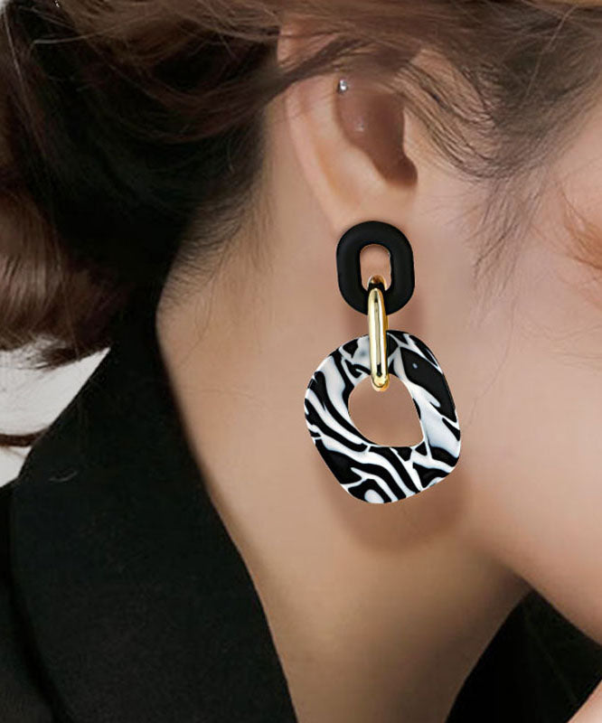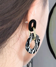 Stylish Black White Stripes Acrylic Diamond Hoop Earrings