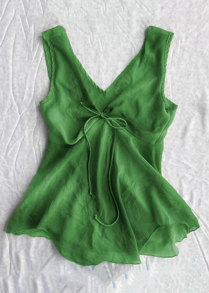 Simple Purple V Neck lace Up Solid Cotton Tank Sleeveless