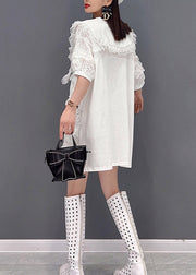 Style White O-Neck Tulle Patchwork Lace Layered Dresses Short Sleeve