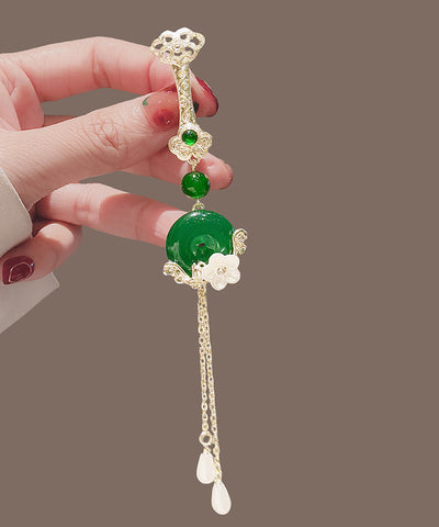 Novelty Green Alloy Jade Ping Buckle Floral Tassel Brooches