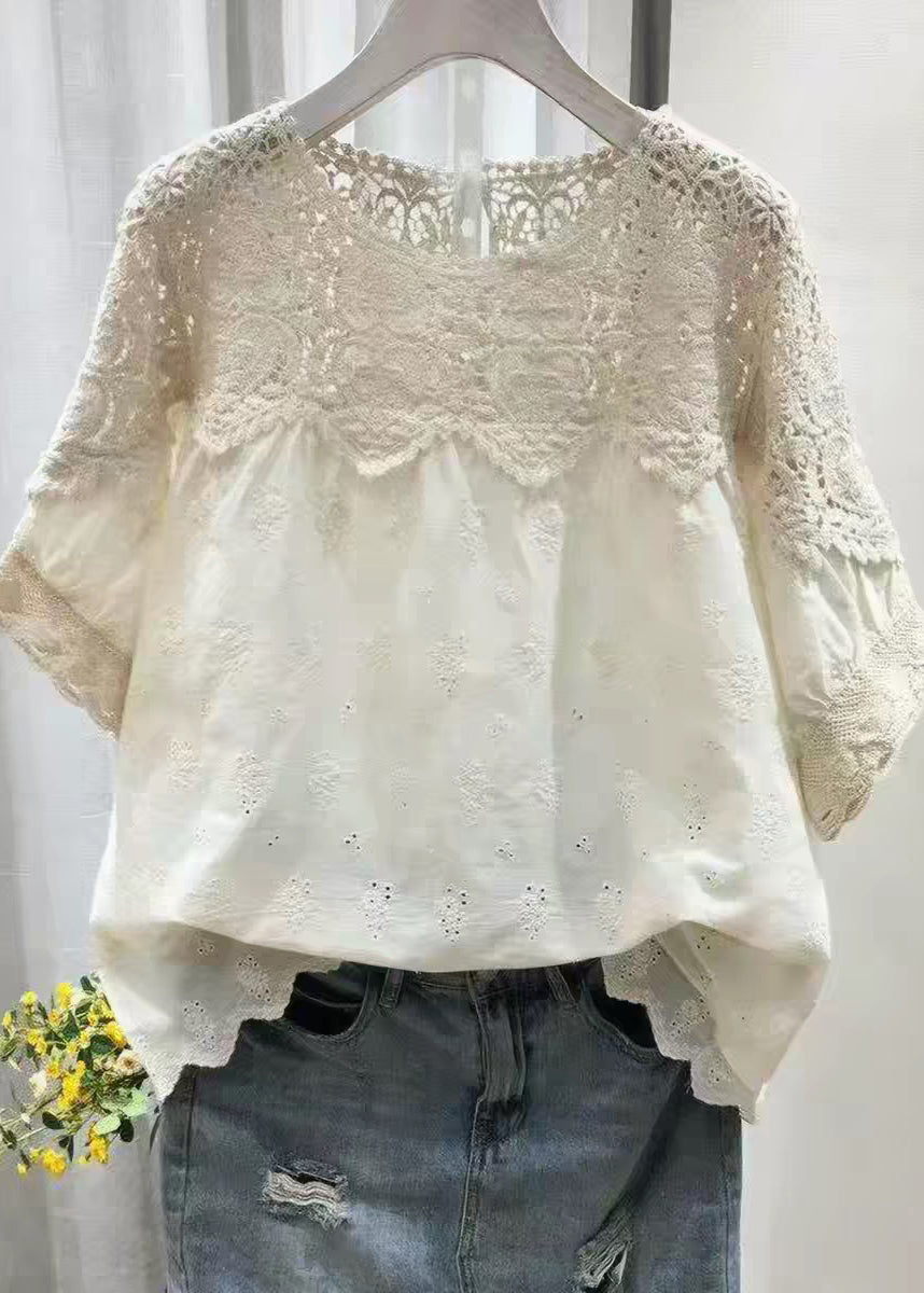 Style Beige O-Neck Hollow Out Tops Summer