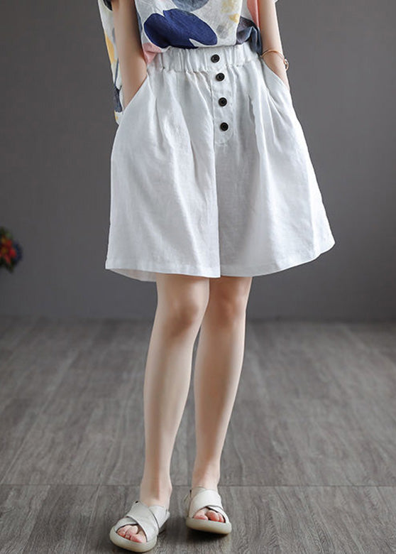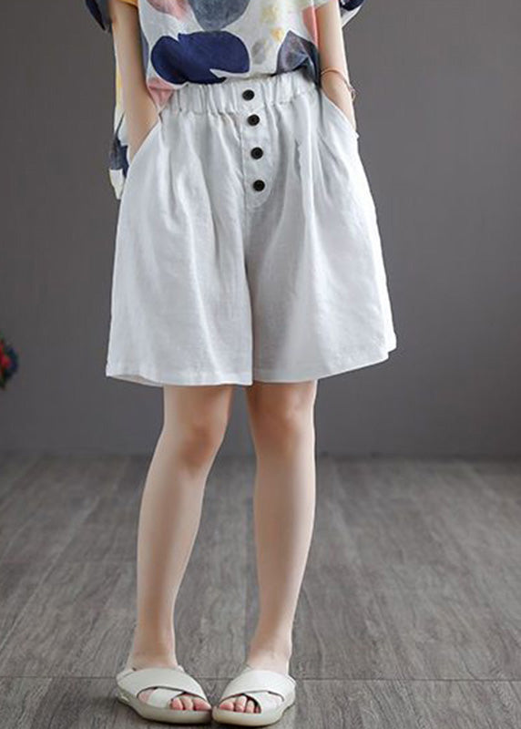 White Button Solid Wide Leg Shorts