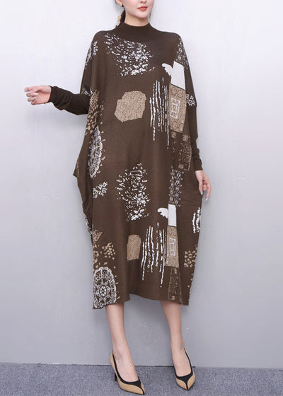 Fine Khaki Oversized Print Knit Sweater Dress Winter