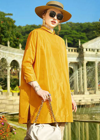 Yellow Patchwork Cotton Trench Stand Collar Tie Waist Fall