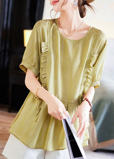 Fine Yellow Ruffled Patchwork Top Short Sleeve