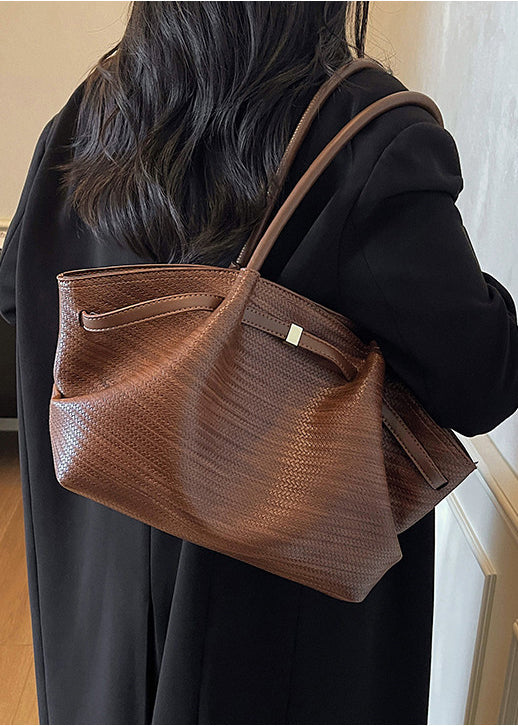 Organic Brown Solid Durable Faux Leather Women Handbags