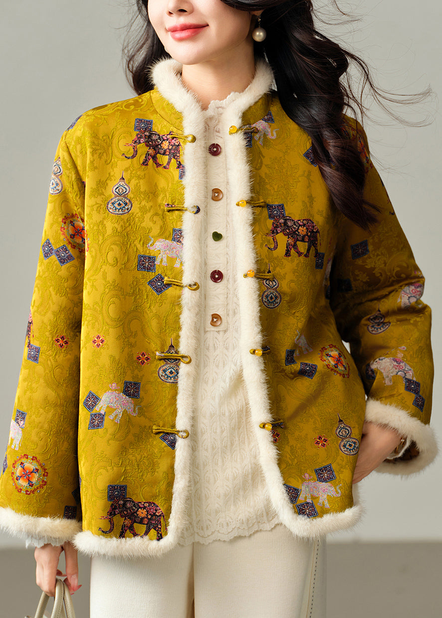 New Chinese Black Jacquard Mink Fur Fine Cotton Filled Coat Winter