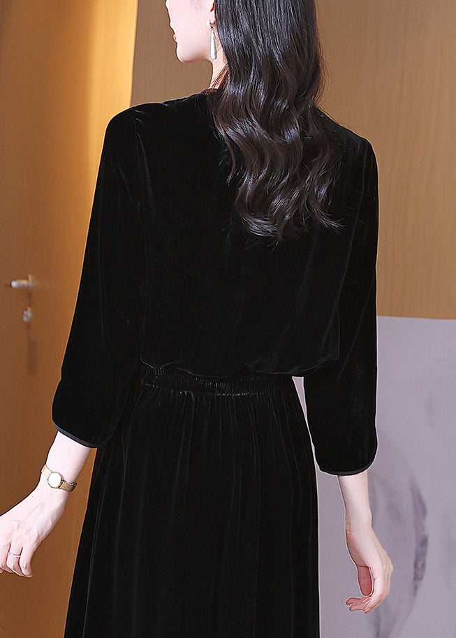 Loose Black Embroidered Pearl Side Open Silk Velour Top Bracelet Sleeve