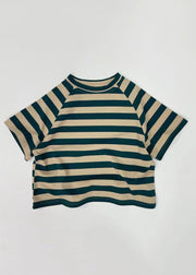 Casual Red Girls Striped Patchwork Tops Short Sleeve