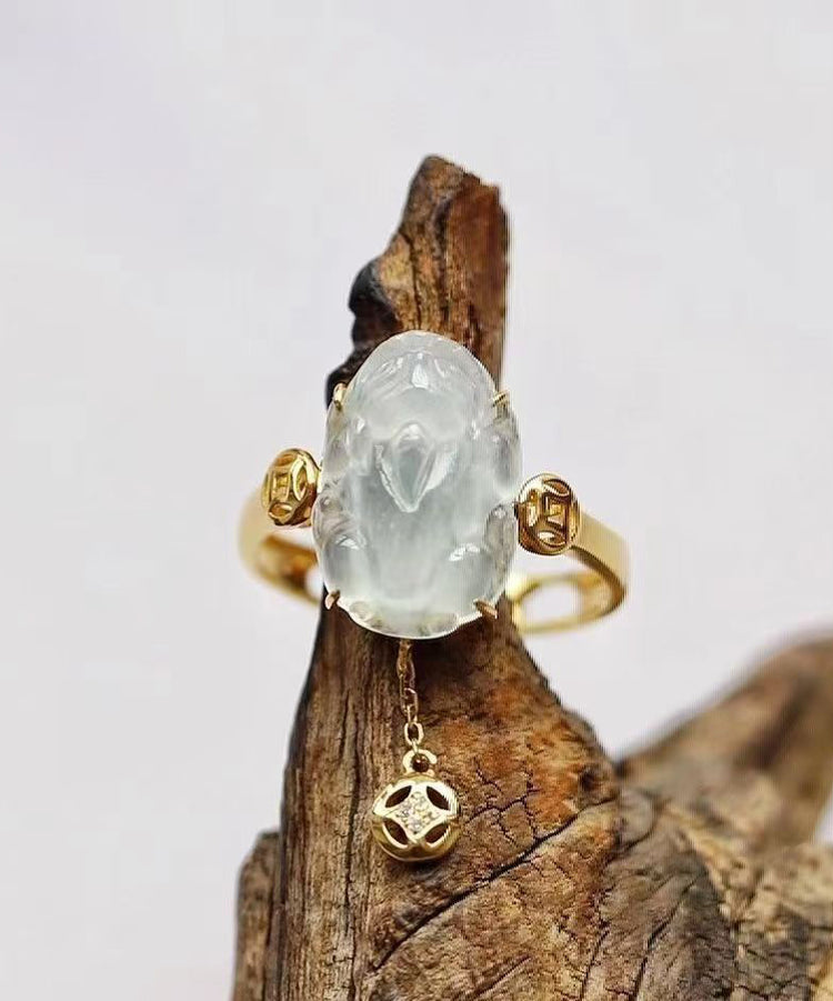 Fine Gold Sterling Silver Overgild Chalcedony A Mythical Wild Animal Tassel Rings