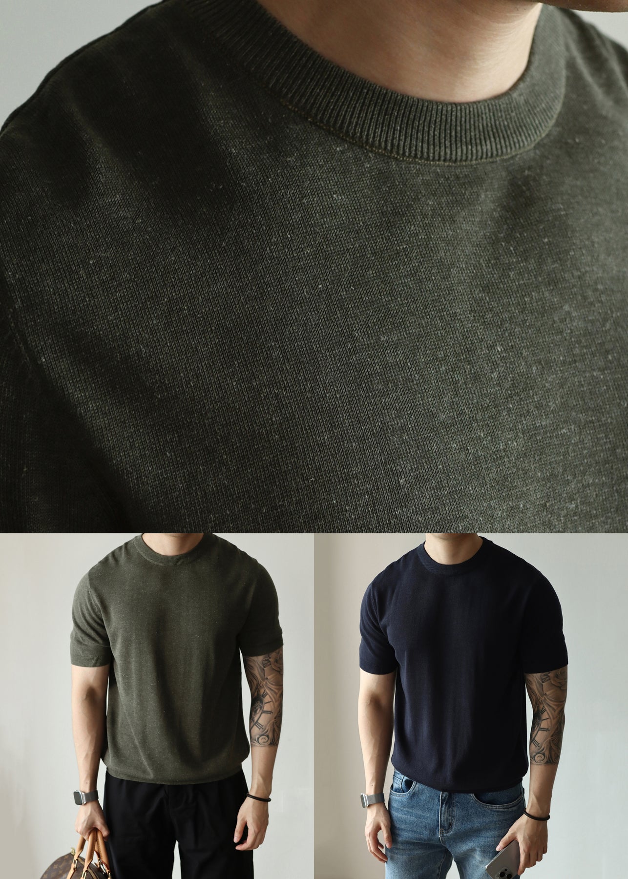 Casual Green O Neck Cozy Knit T Shirt Men Summer