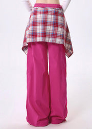 Elegant Rose Elastic Waist Patchwork Exra Large Hem Cotton Pants Spring