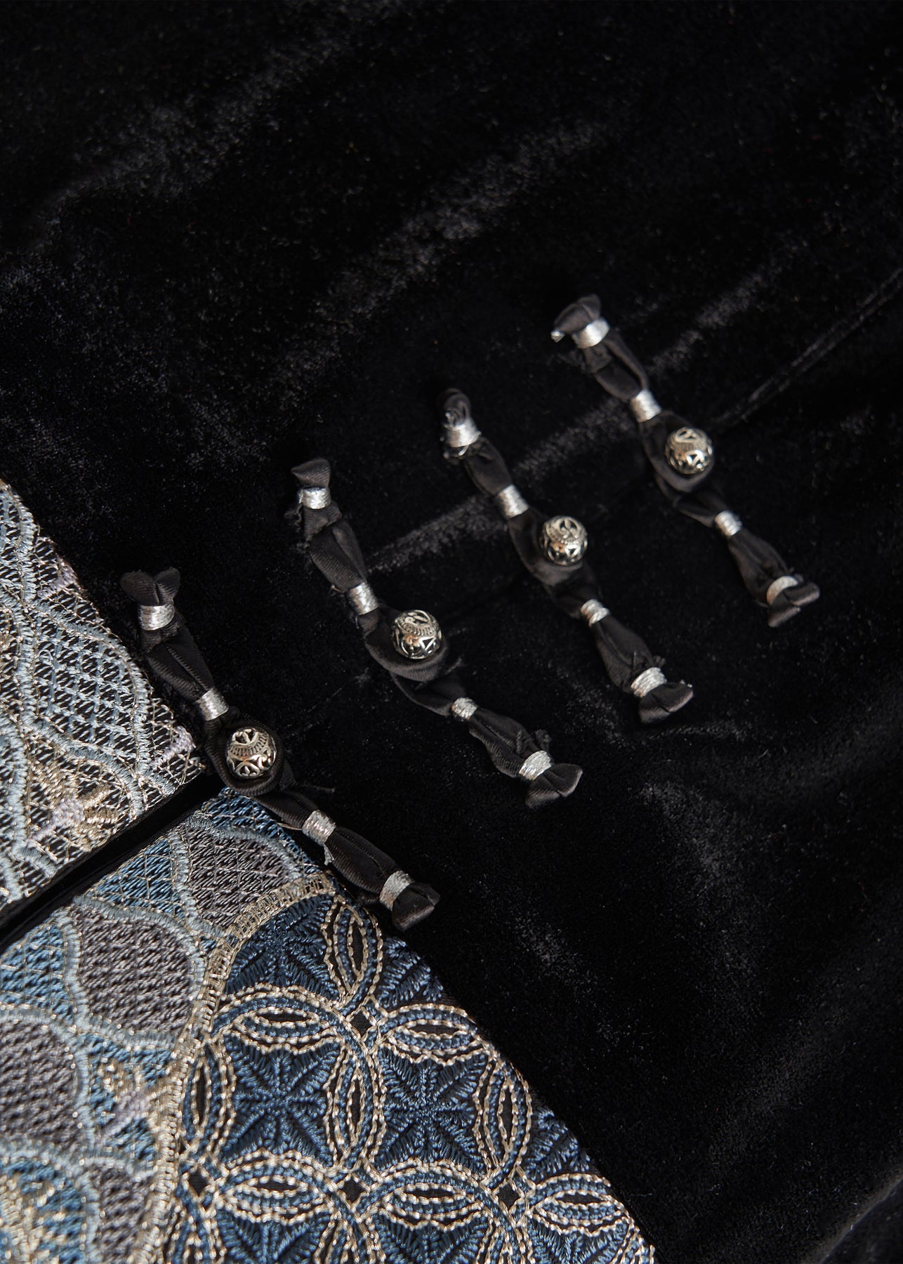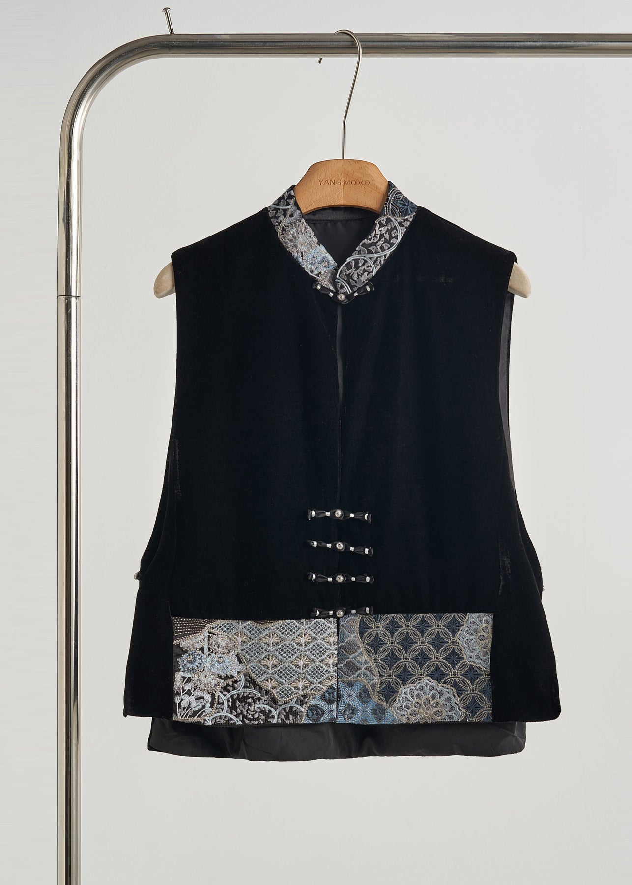Art Black Embroidered Patchwork Silk Velvet Oriental Vests Fall