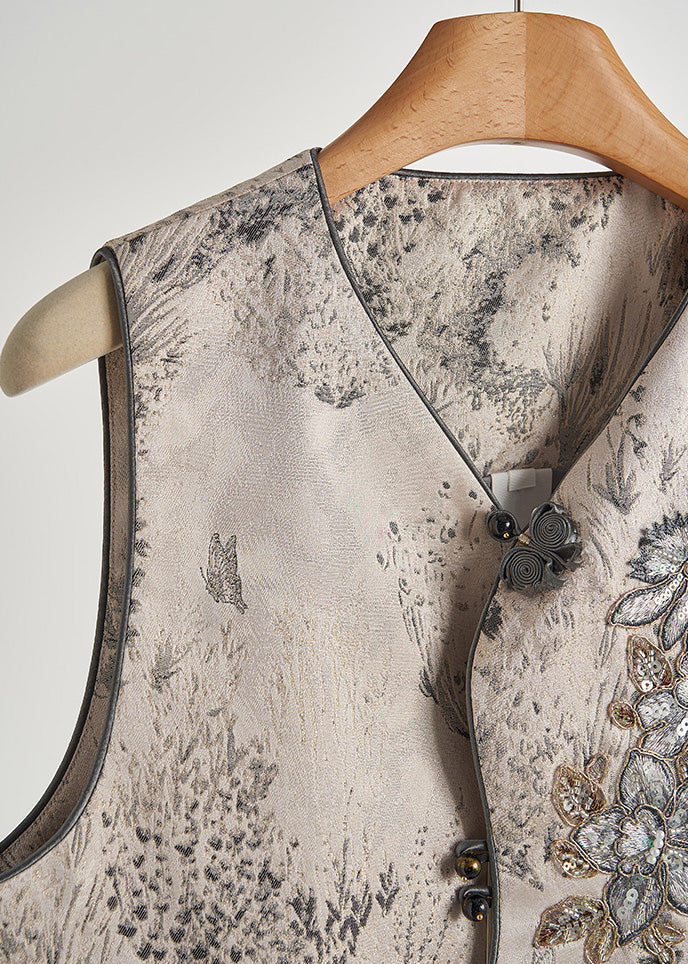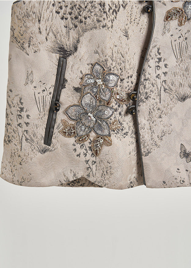Stylish Beige Embroidered Jacquard Cotton Two Piece Set Fall
