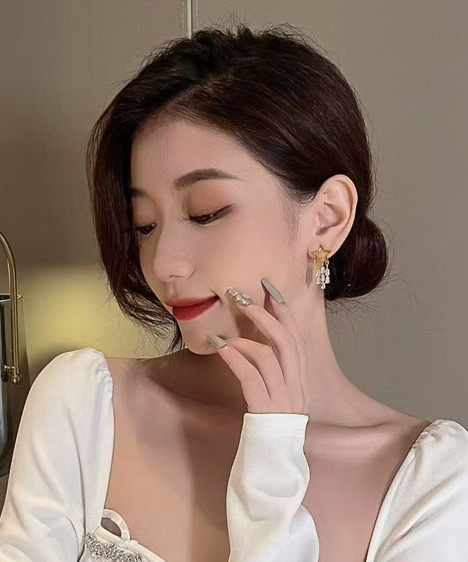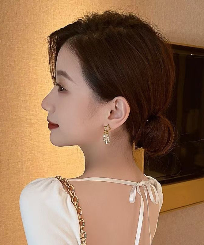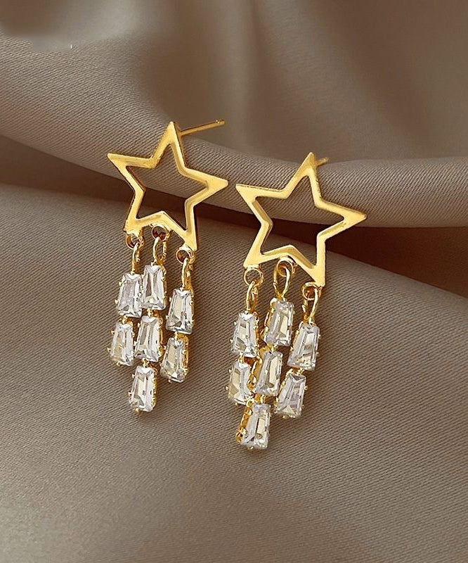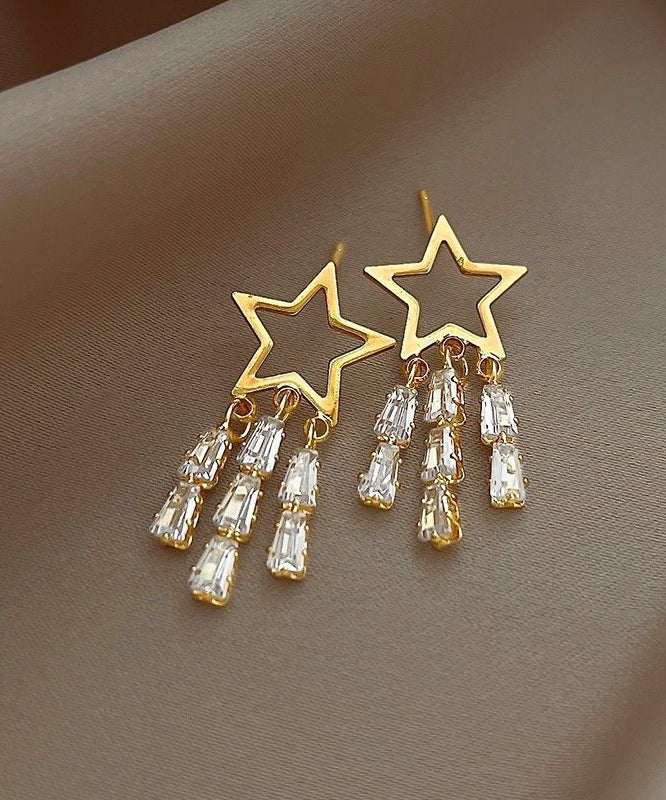 Novelty Gold 925 Silver Alloy Zircon Star Tassel Drop Earrings