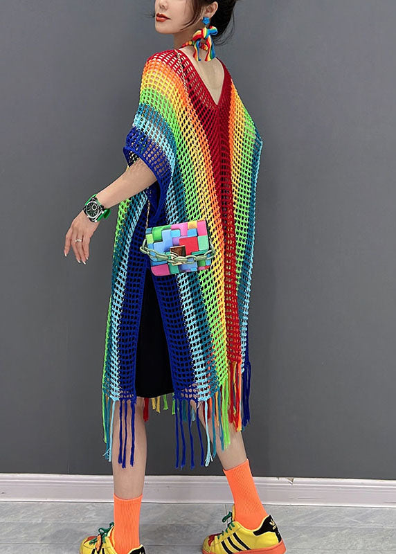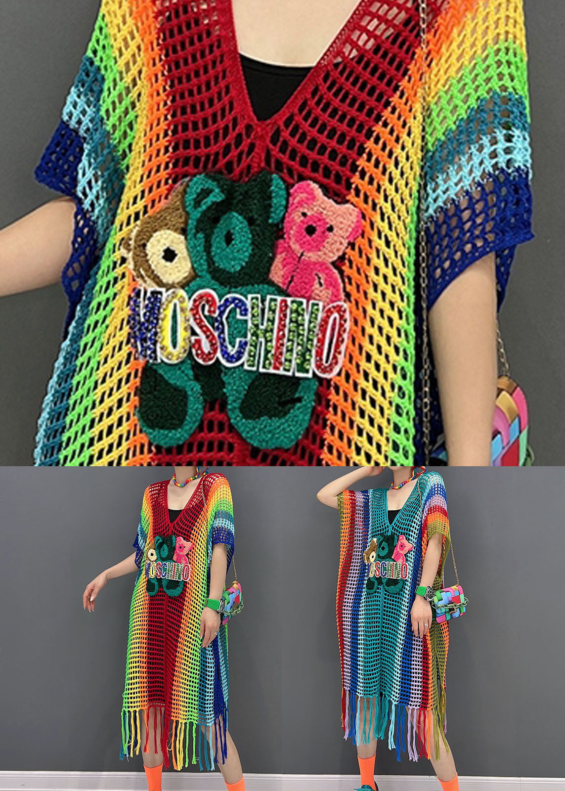 Unique Red V Neck Hollow Out Knit Dress Short Sleeve