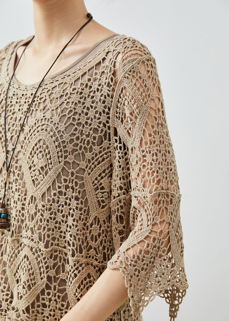 Beautiful Khaki Lace Patchwork Tulle Fake Two Piece Dresses Summer