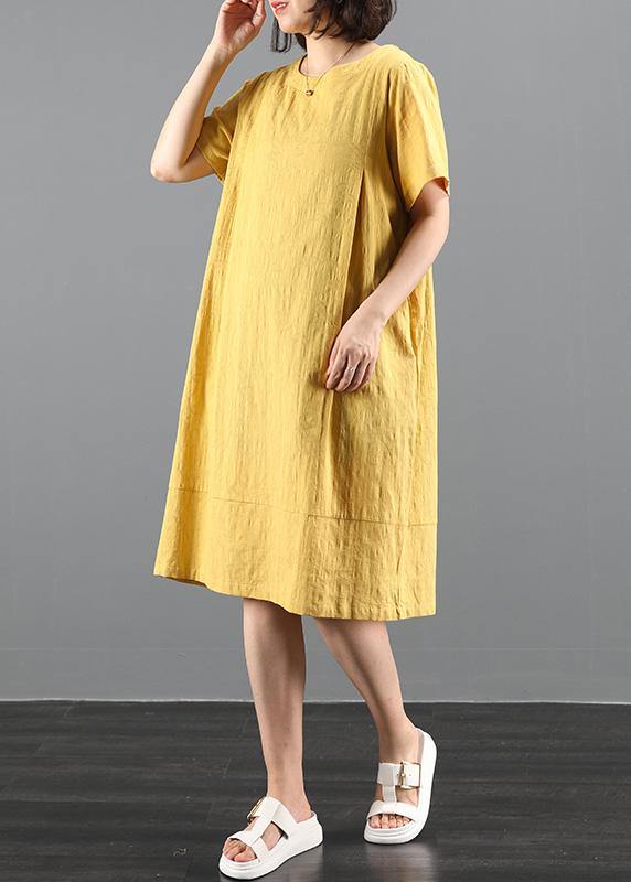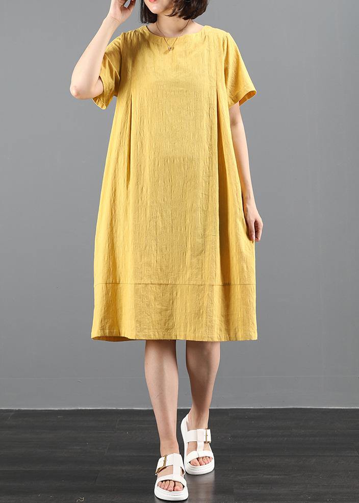 Sommerkleid mit französischen O-Nackentaschen Arbeitskleidung gelbes Kleid
