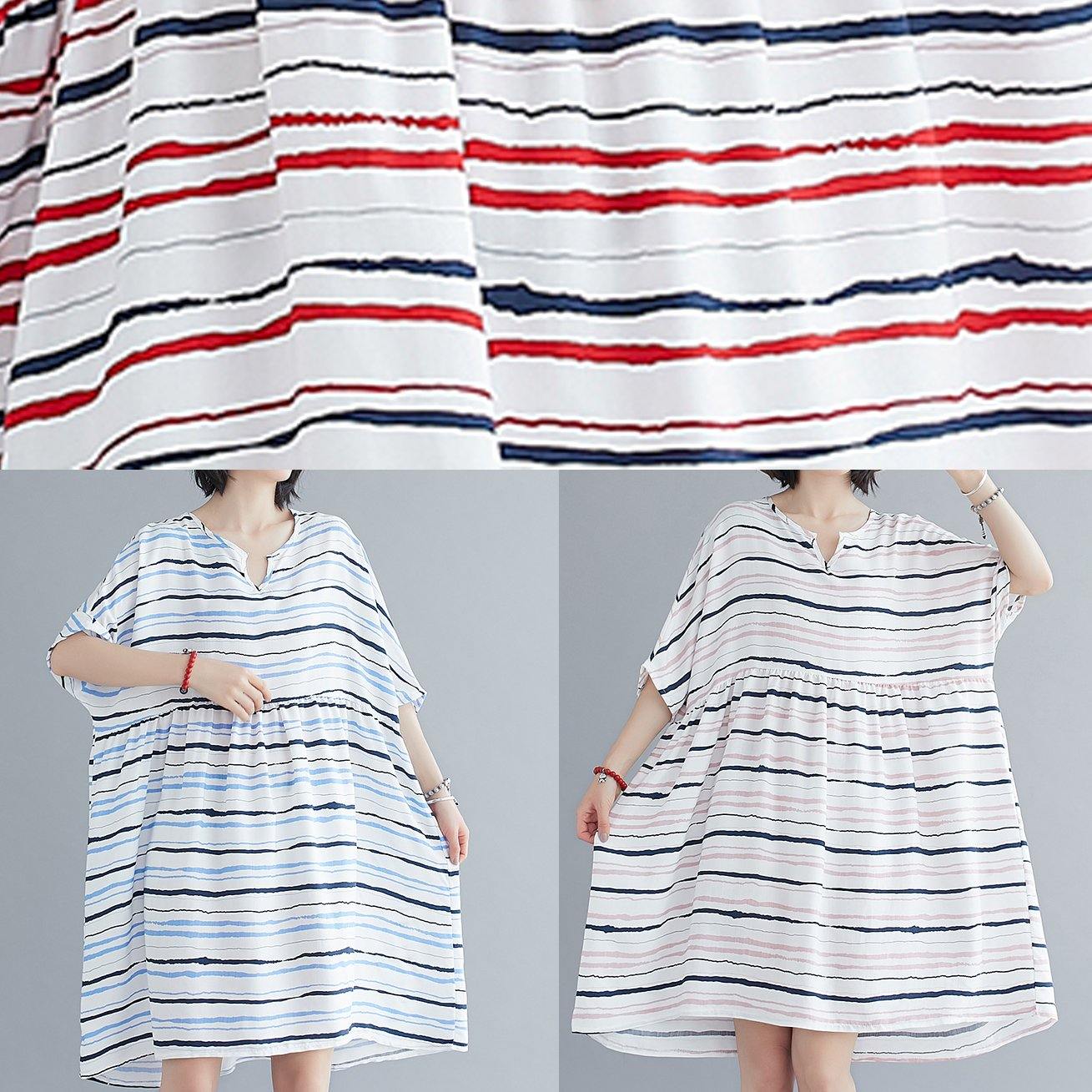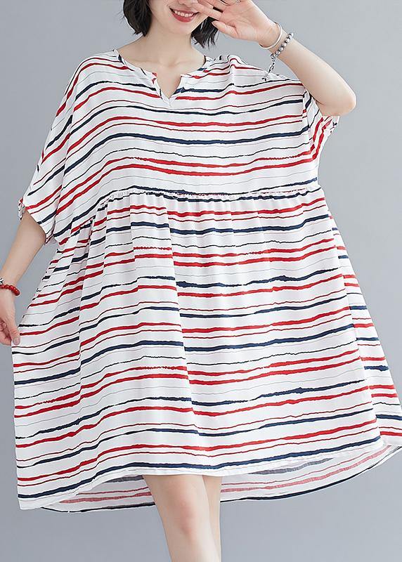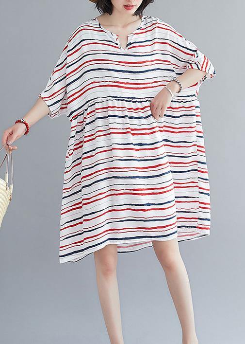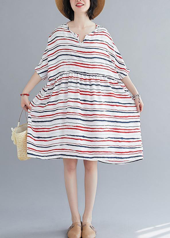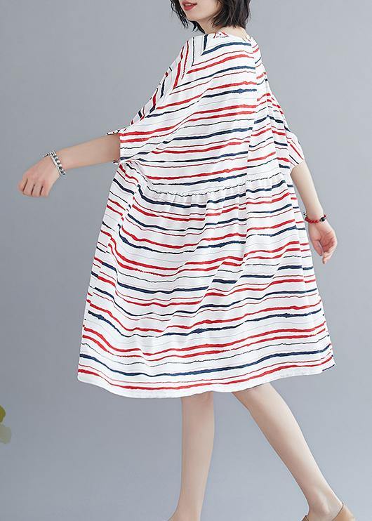 Vivid o neck summer quilting dresses Fashion Ideas red striped Dress - SooLinen
