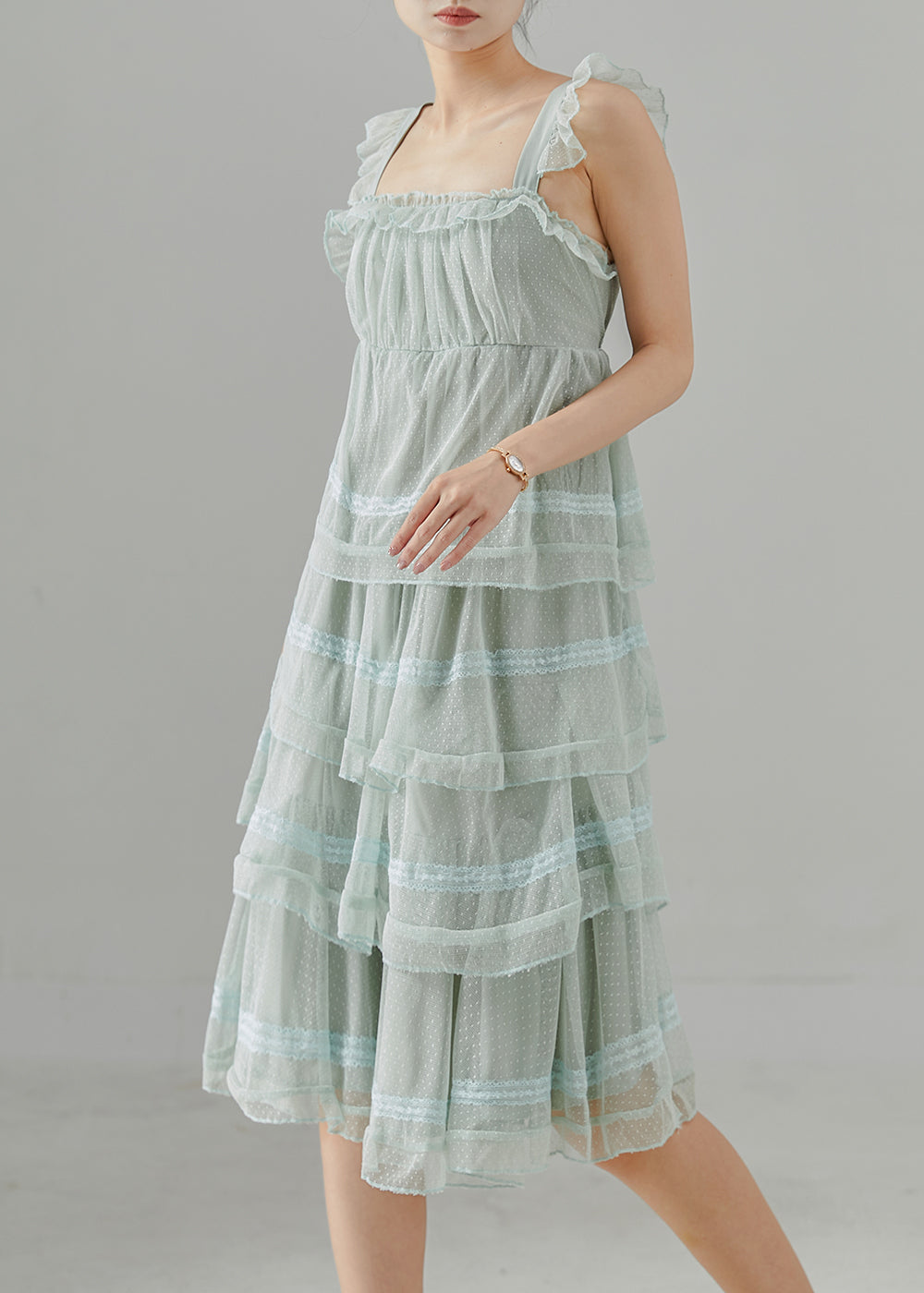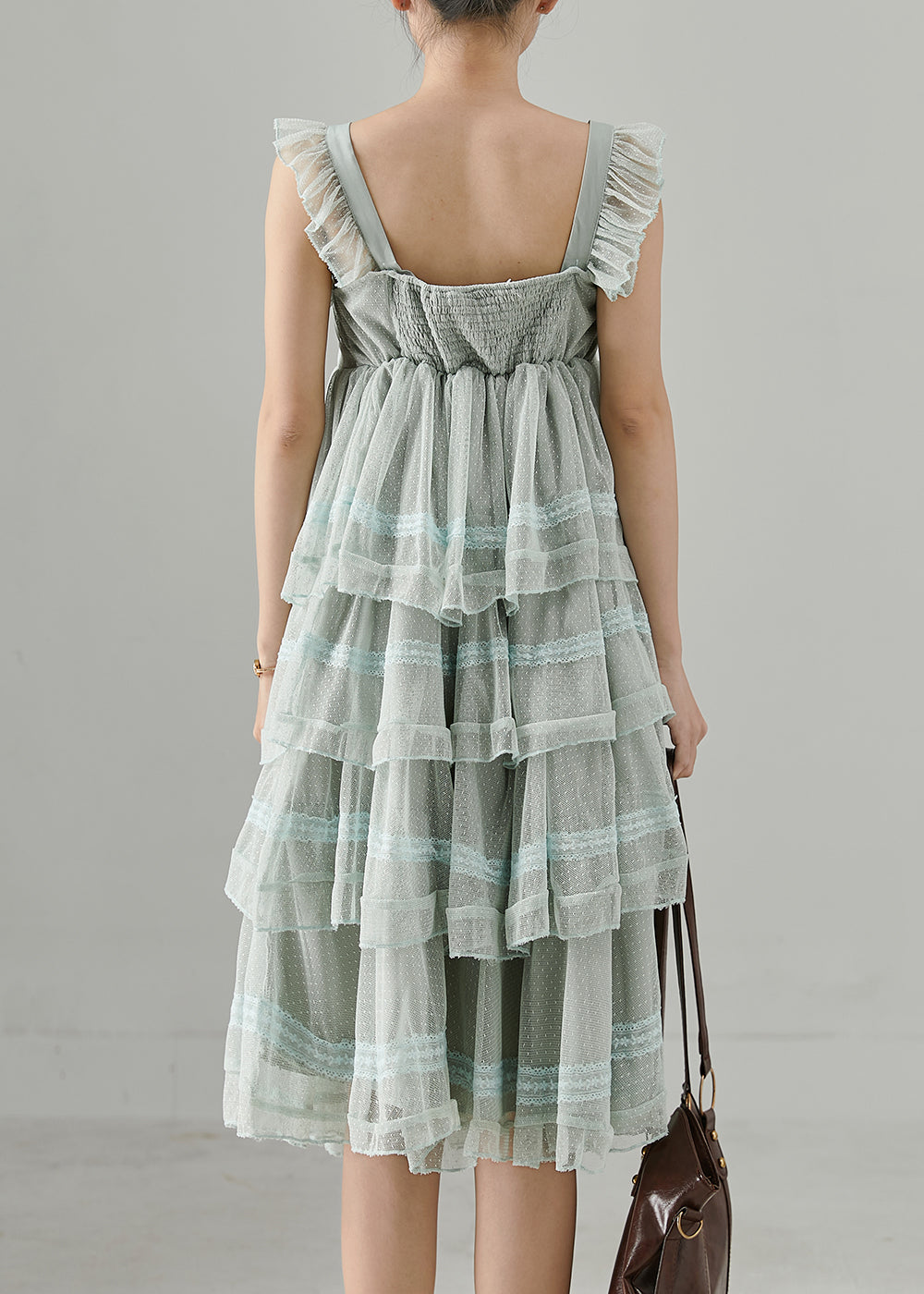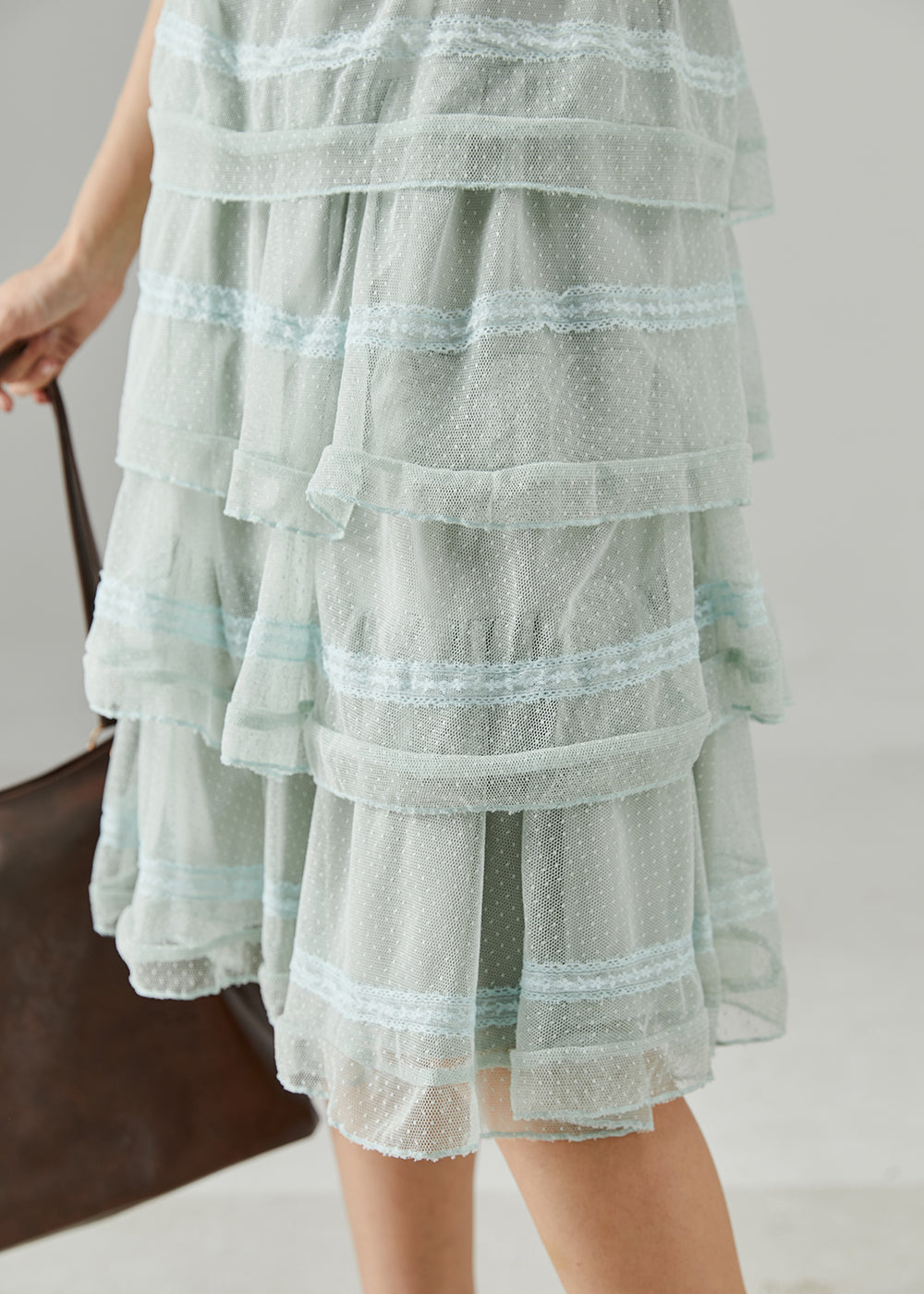 Handmade Tea Green Lace Patchwork Tulle Tunic Dress Summer