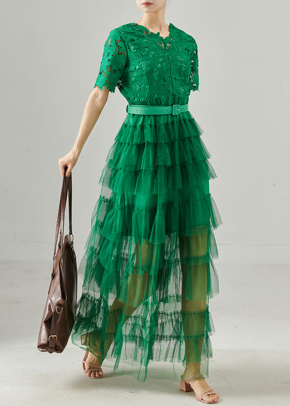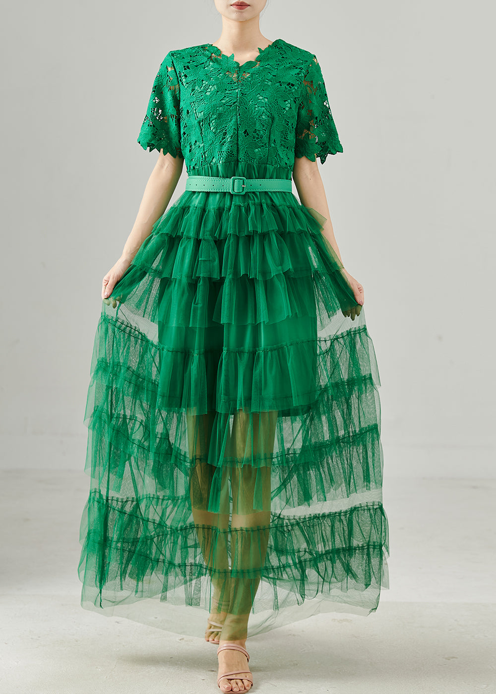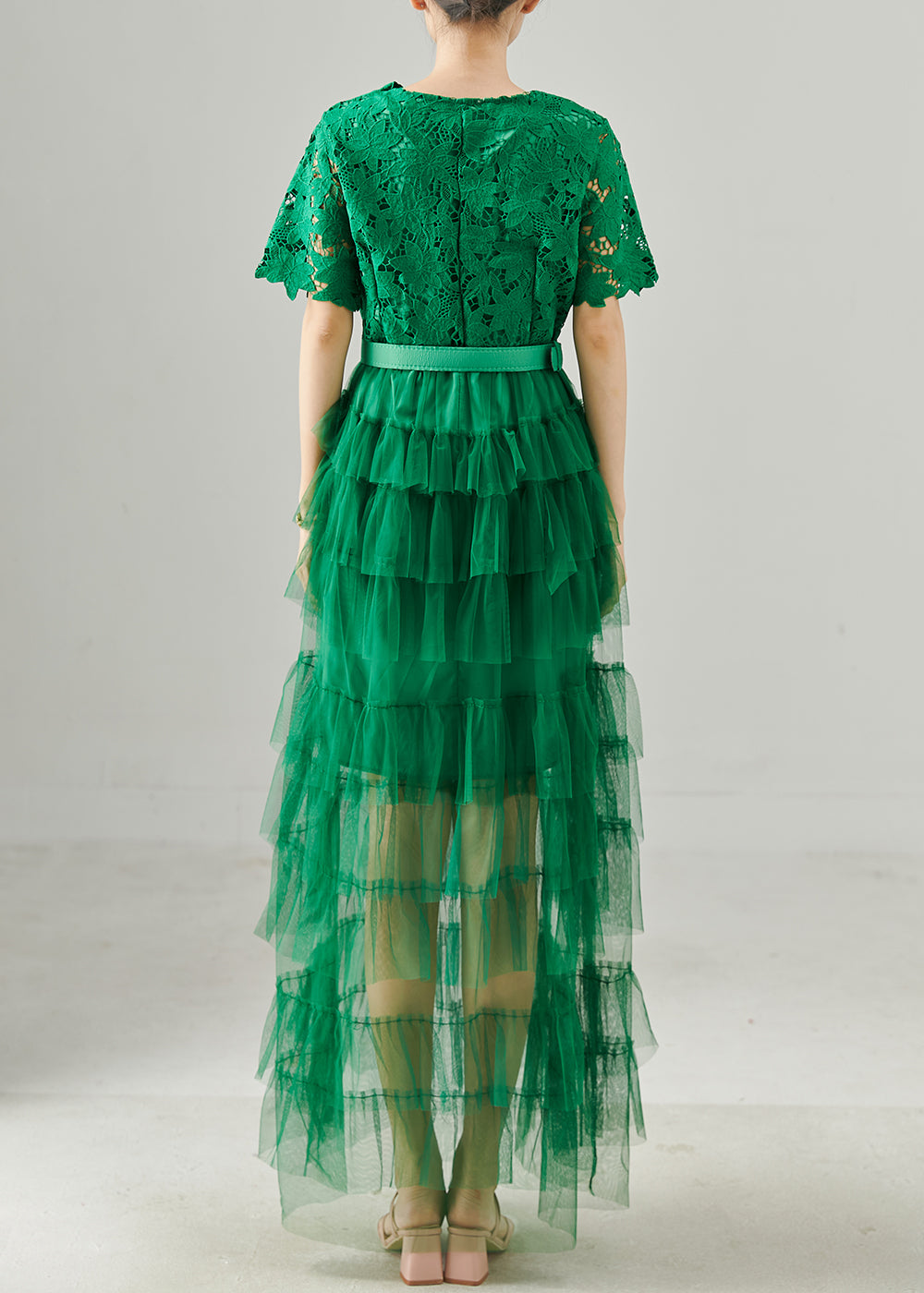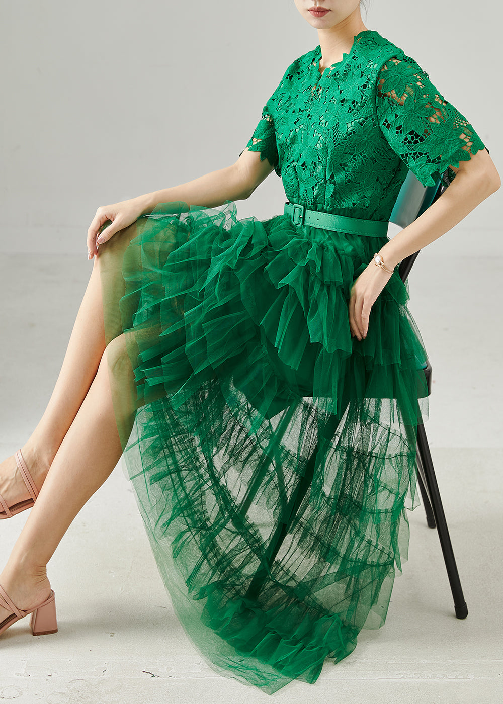 Handmade Tea Green Lace Patchwork Tulle Tunic Dress Summer