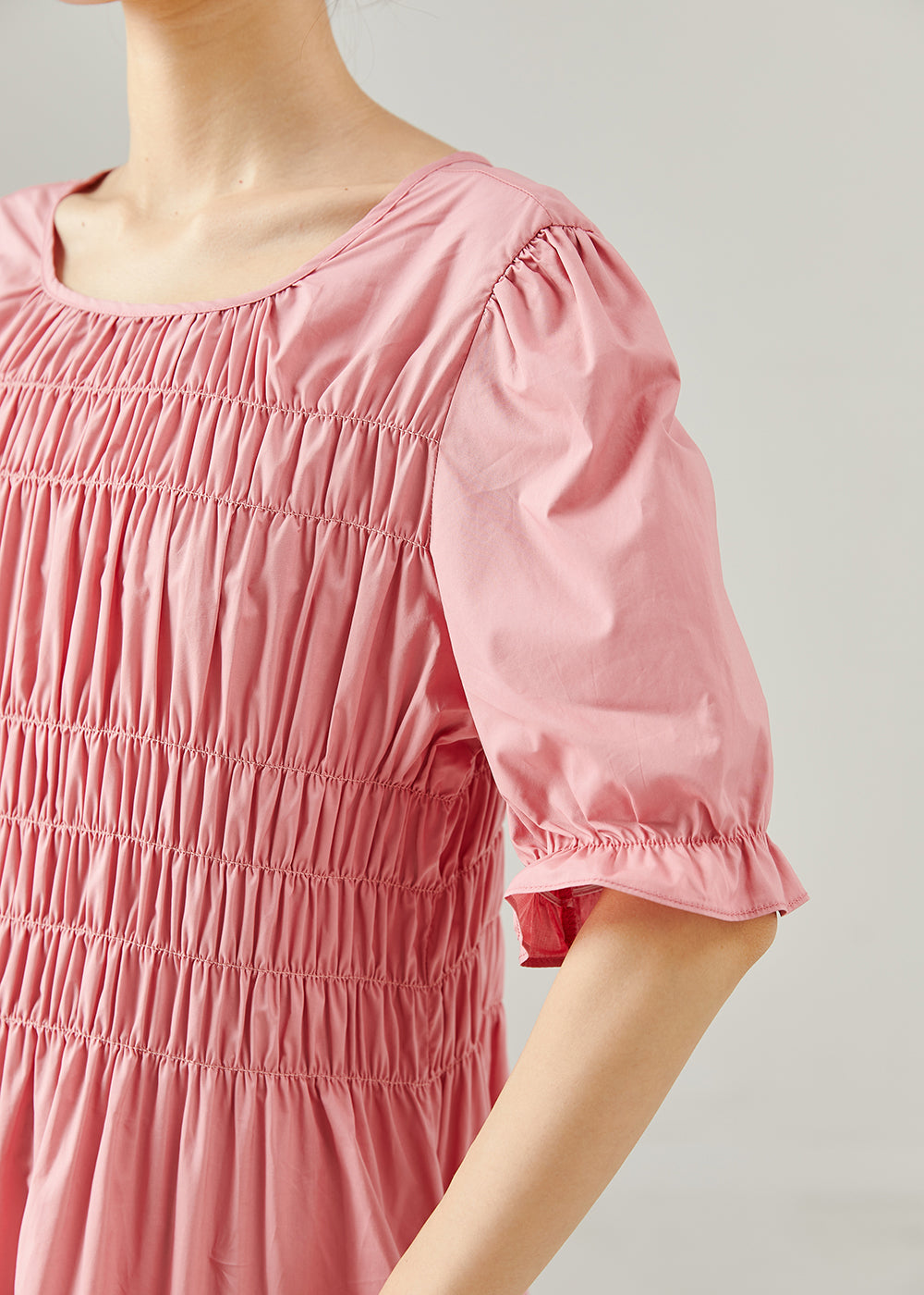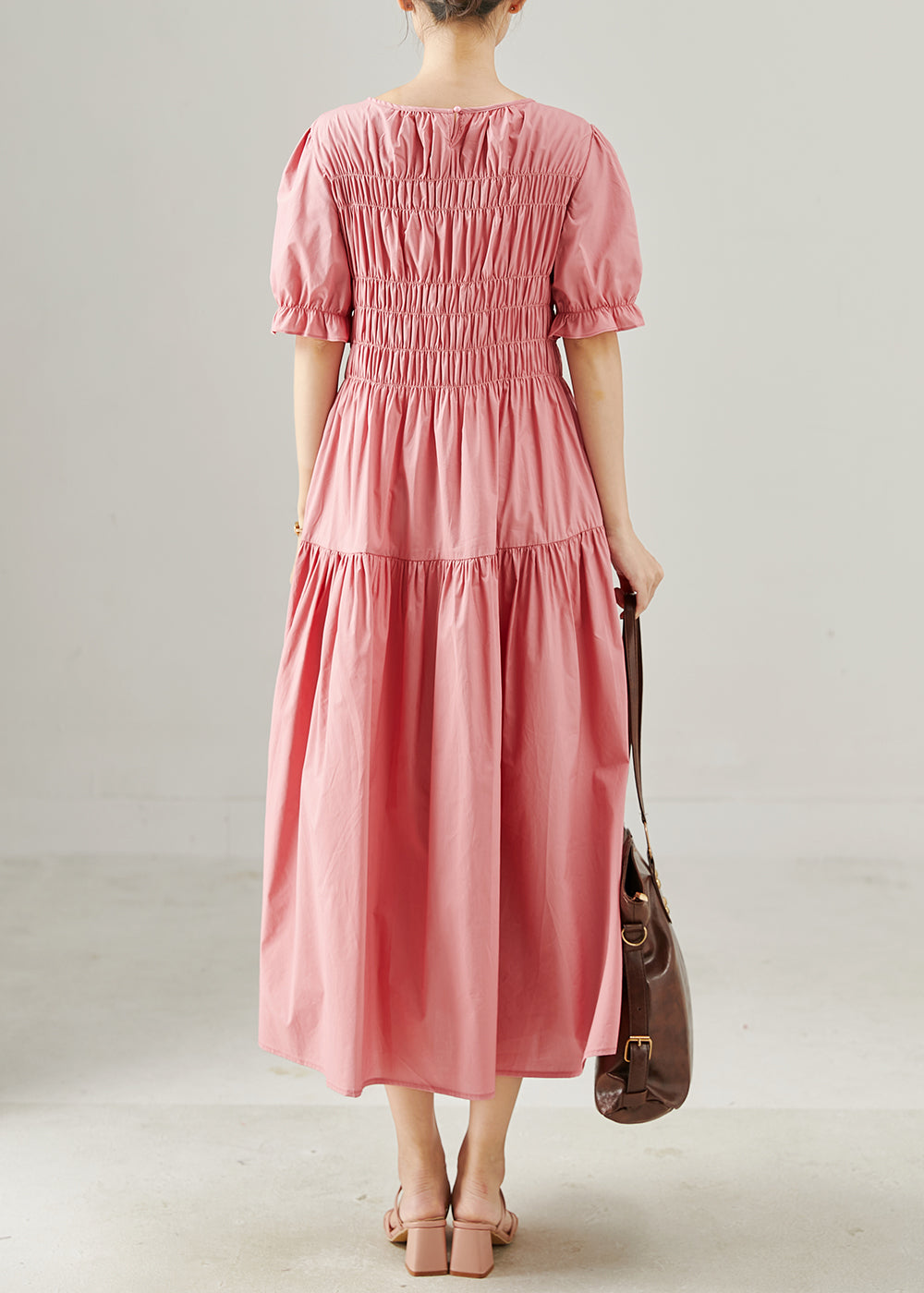 Boho Pink Wrinkled Silm Fit Cotton Holiday Dress Summer