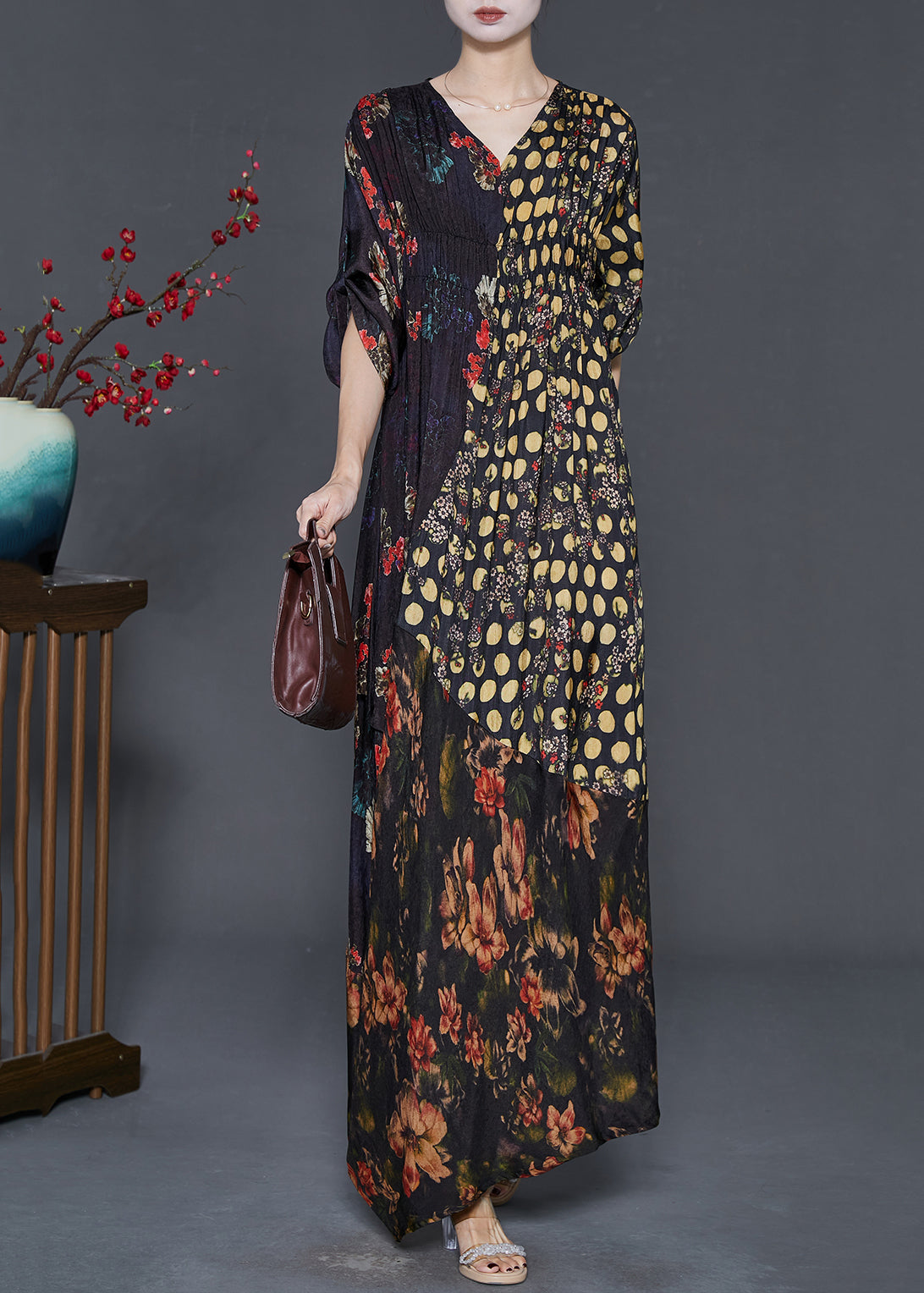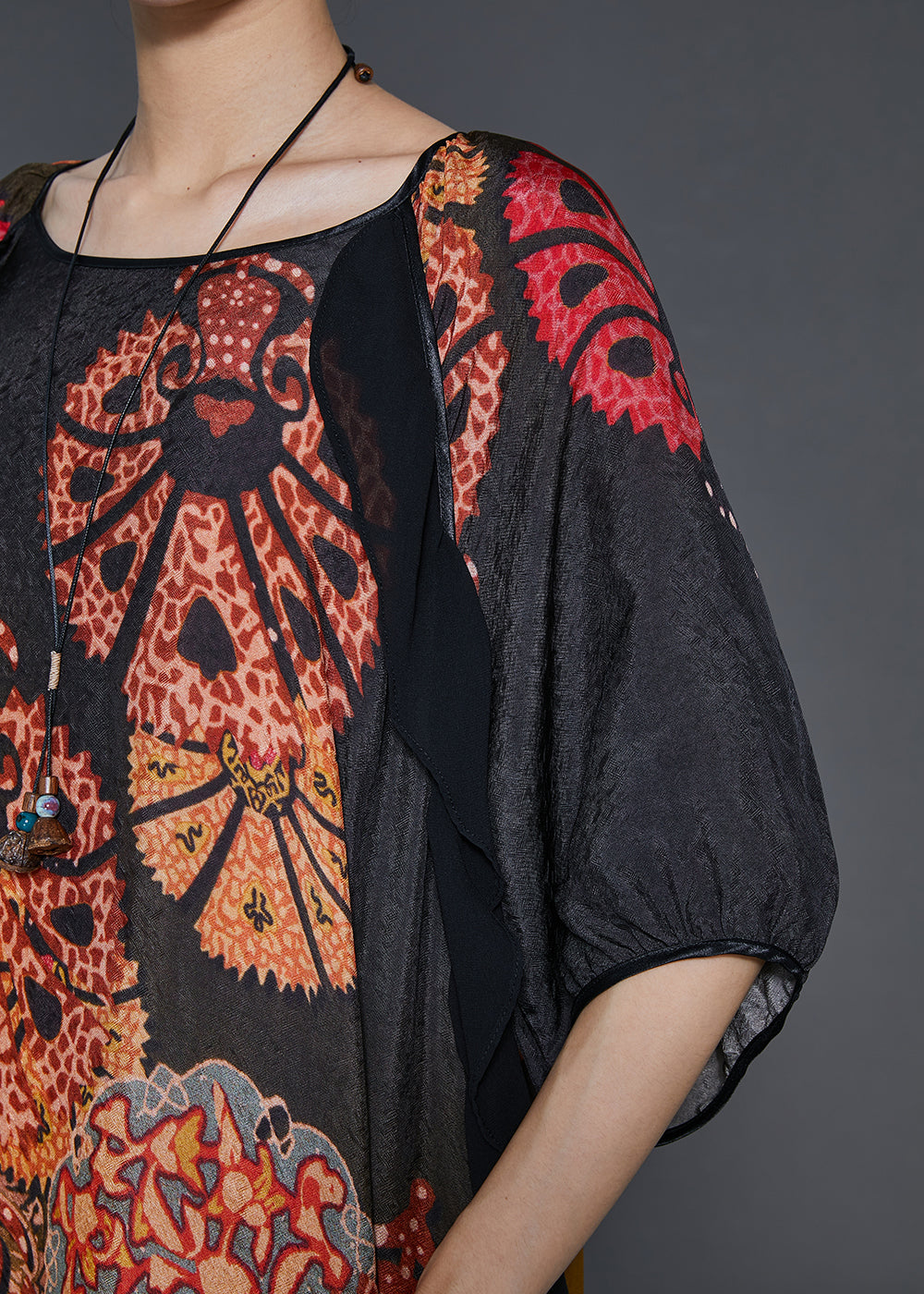 Chic Black Oversized Print Chiffon Maxi Dresses Summer