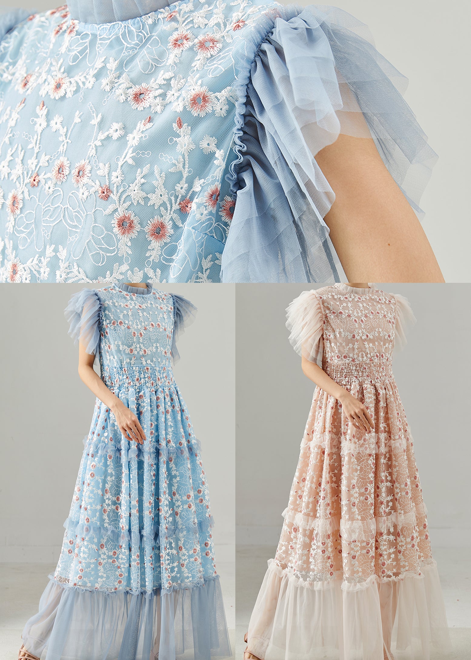 Women Blue Ruffled Patchwork Tulle Dresses Summer