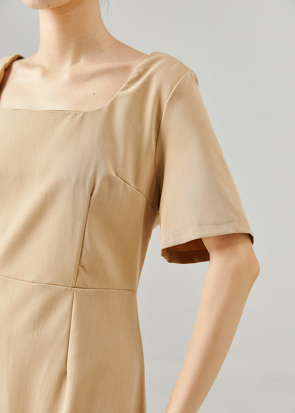 Modern Khaki Square Collar Patchwork Tulle Holiday Dress Summer