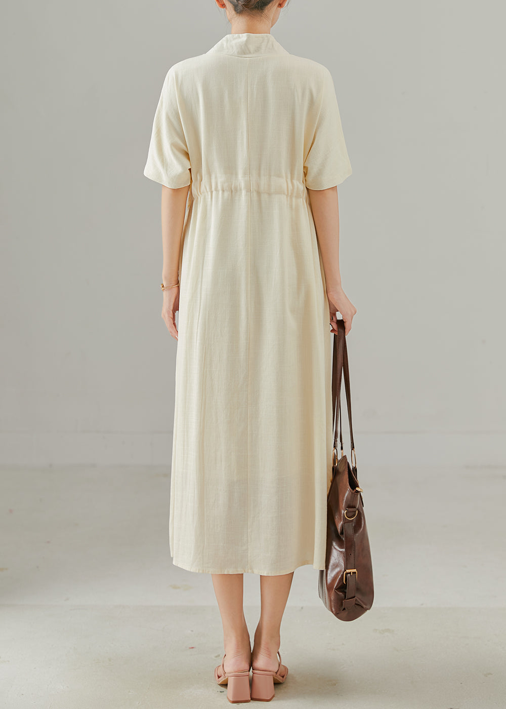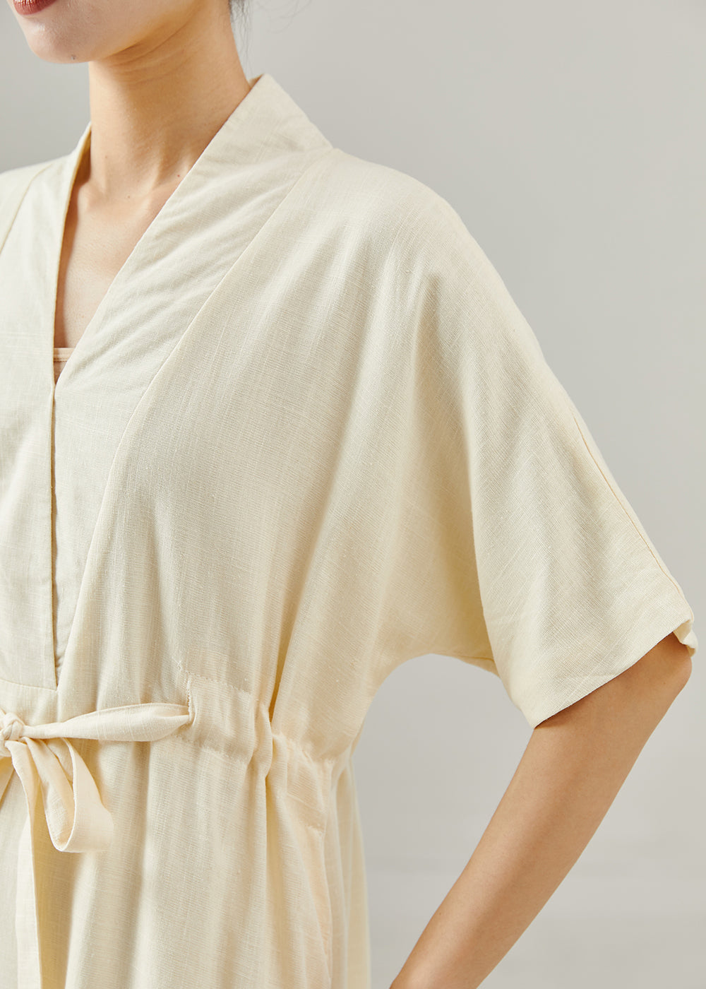 Simple Apricot V Neck Tie Waist Cotton Dress Summer