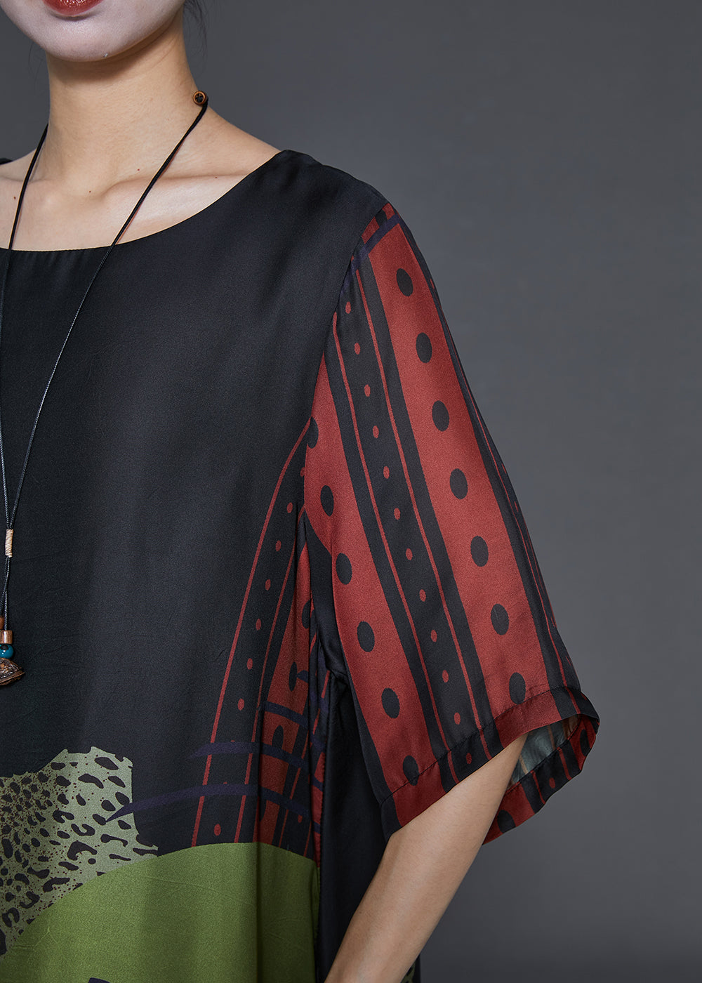 Casual Black Asymmetrical Print Silk Vacation Dresses Spring