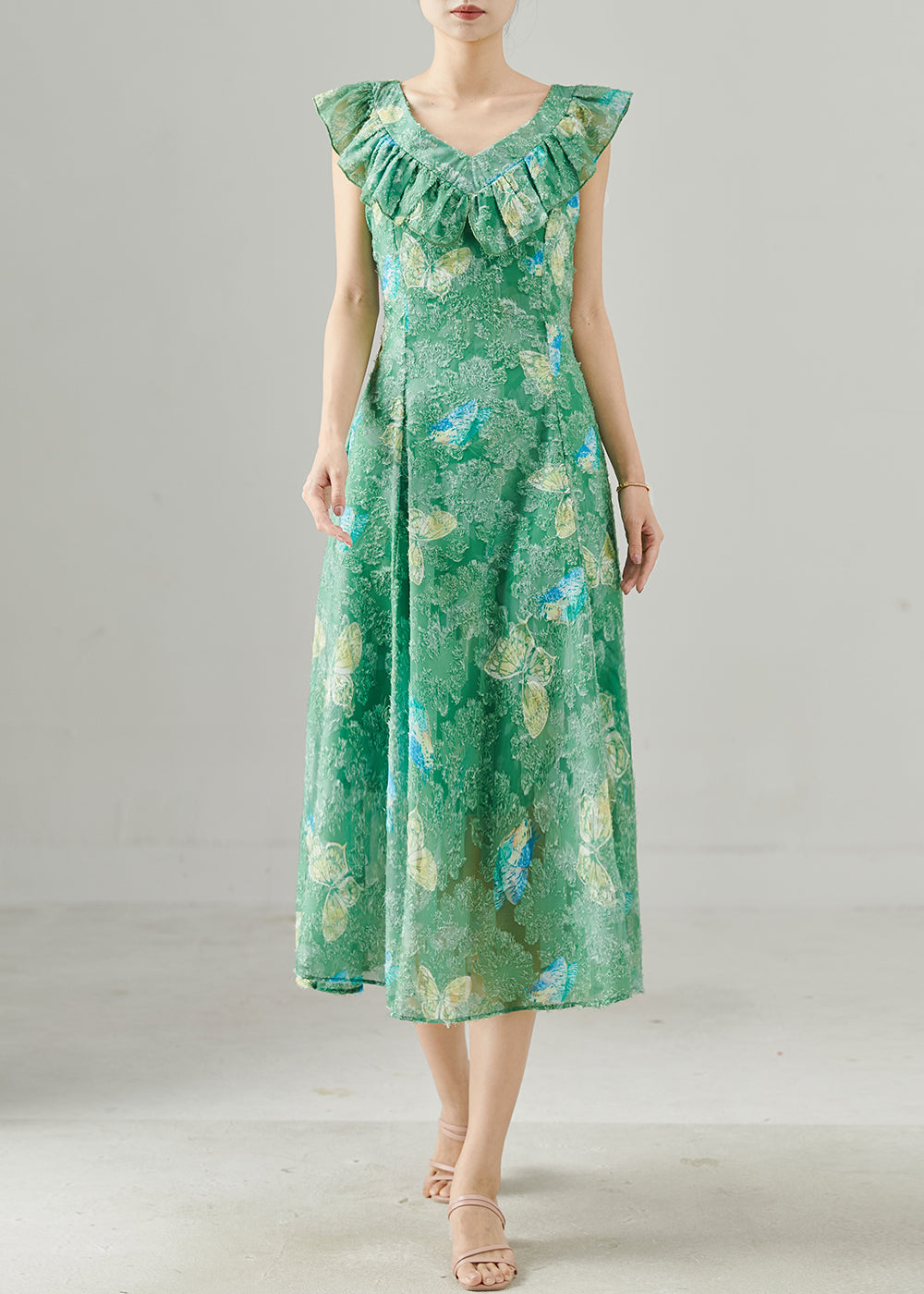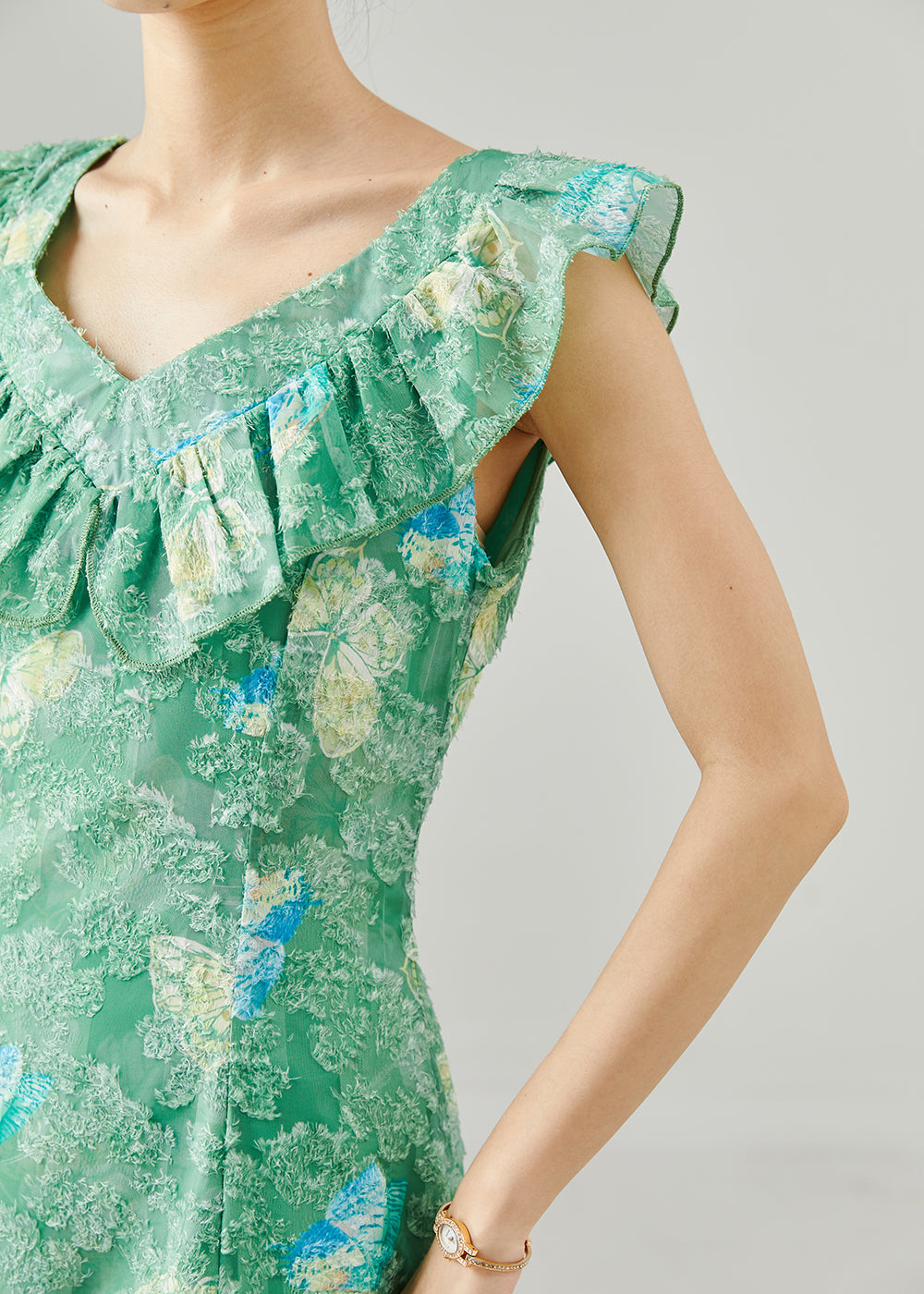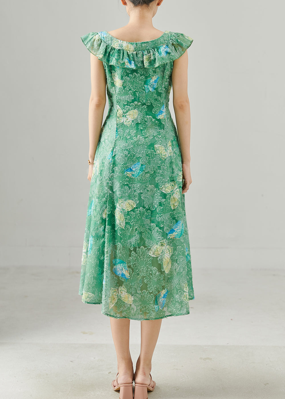 Unique Green Ruffled Butterfly Silk Long Dress Summer