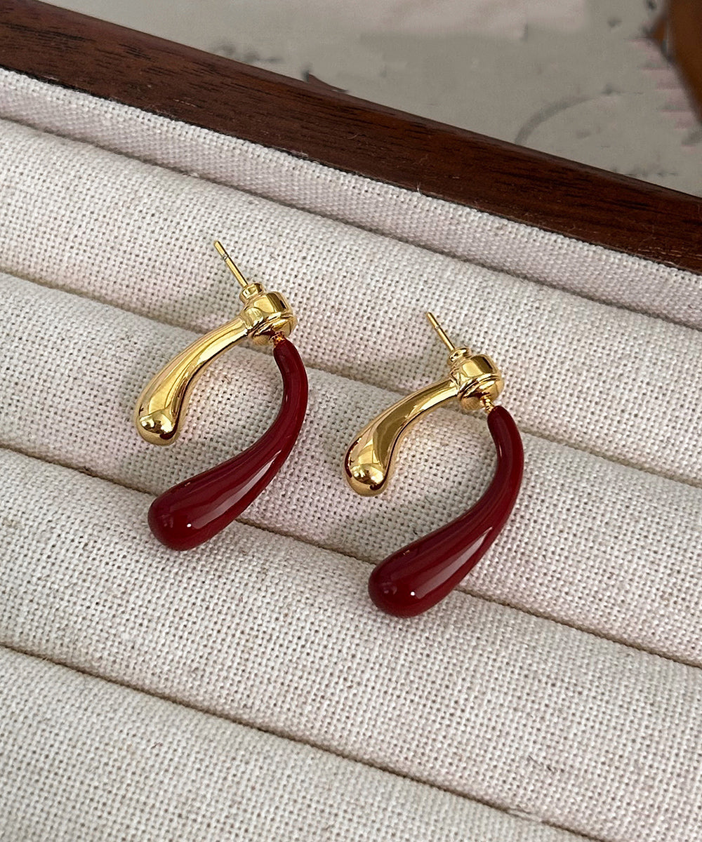 Style Mulberry Copper Overgild Water Droplet Hoop Earrings
