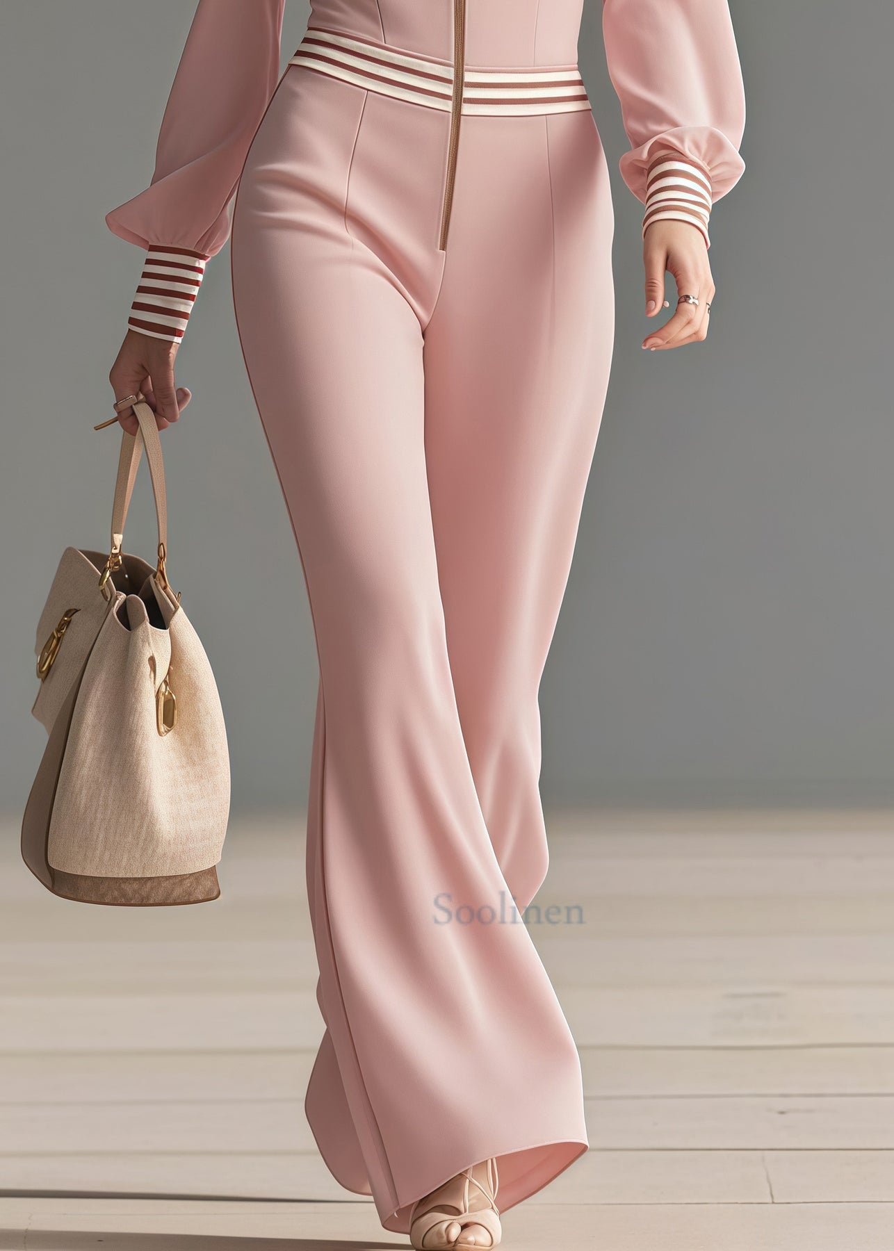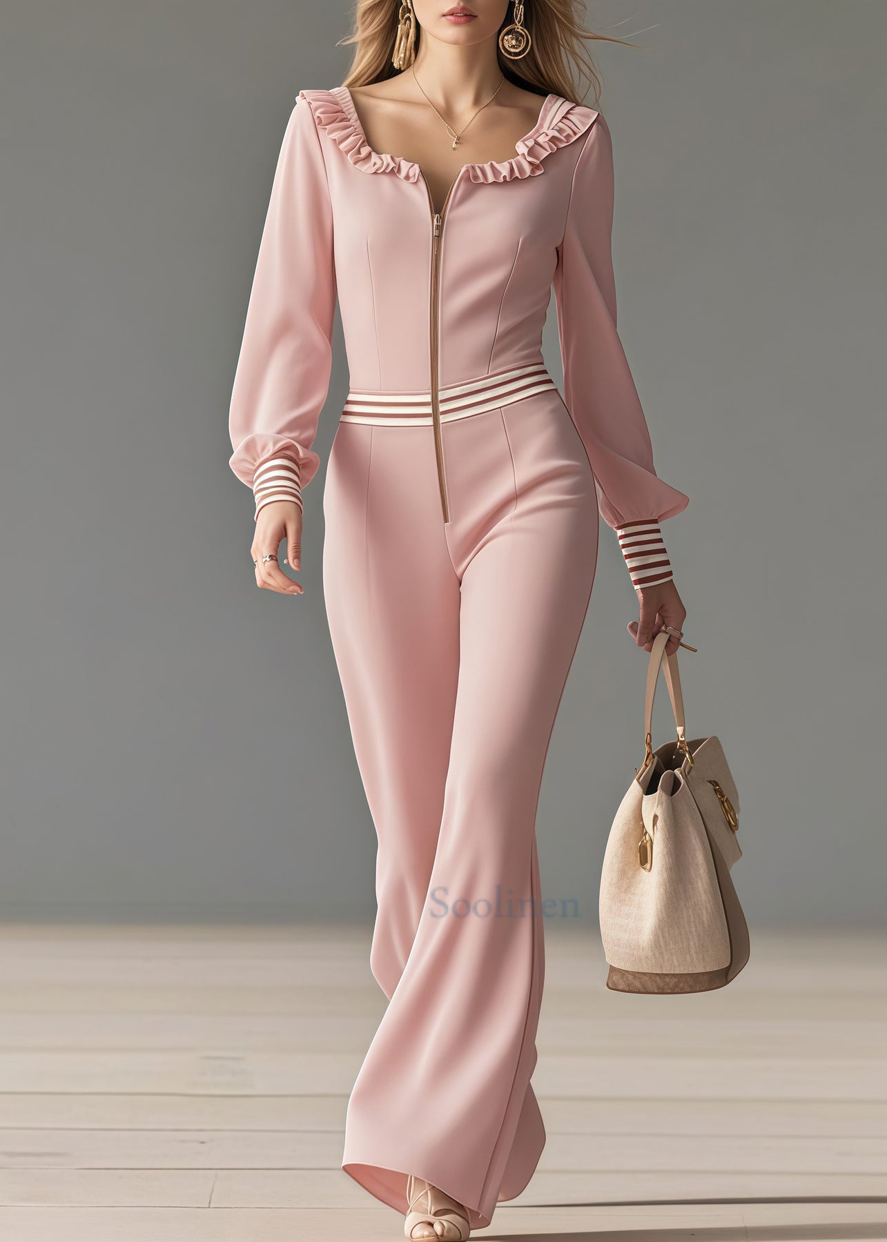 Casual Pink Ruffled Patchwork Draping Chiffon Jumpsuit Spring