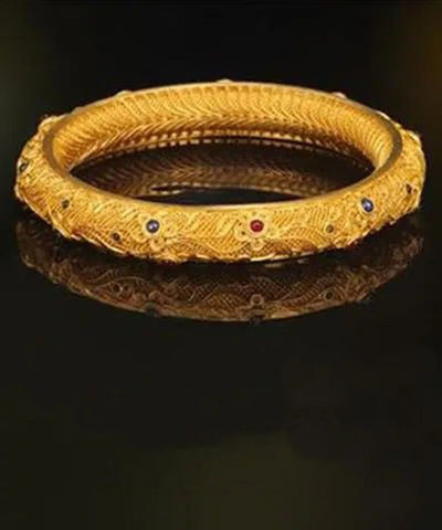 Boutique Art Turquoise Patchwork 14K Gold Bangle
