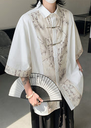 French Black Button Print Patchwork Cotton Men Shirt Summer