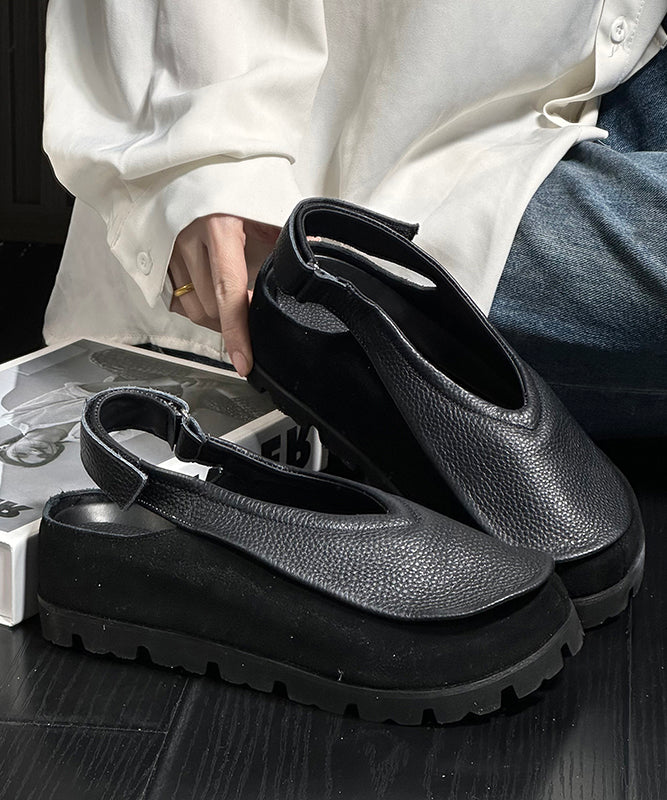 Boho Splicing Platform Flats Yellow Cowhide Leather