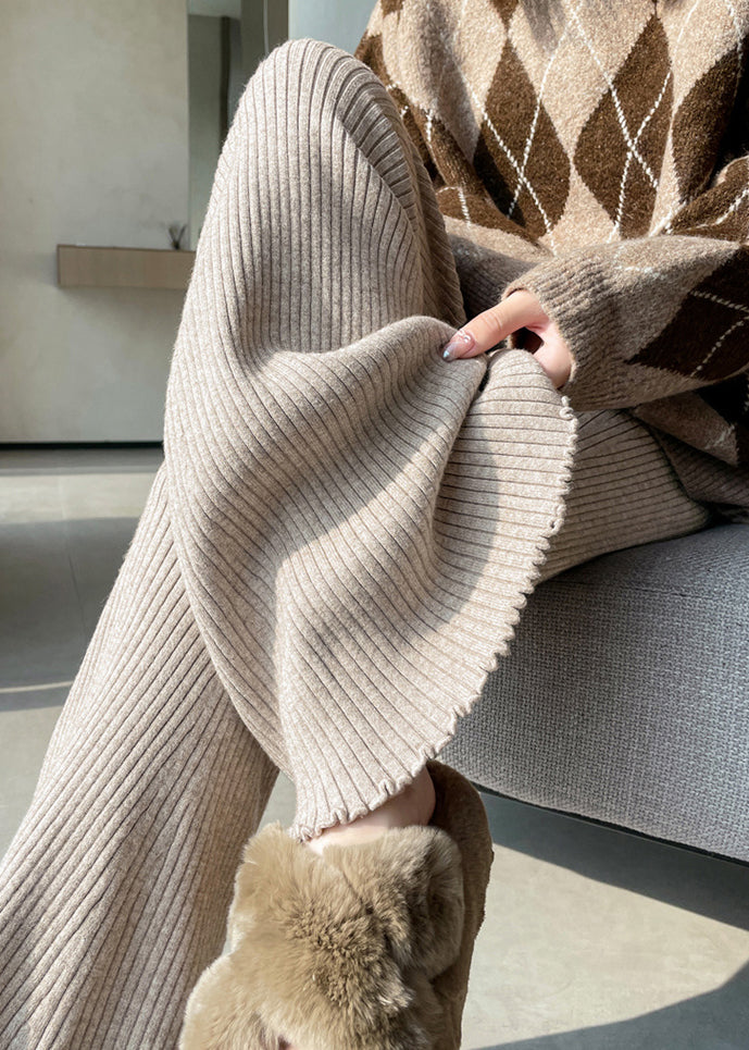 Slim Fit Apricot Drawstring Solid Knit Flared Ttrousers Spring
