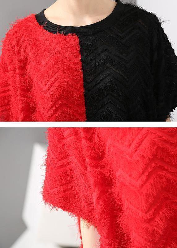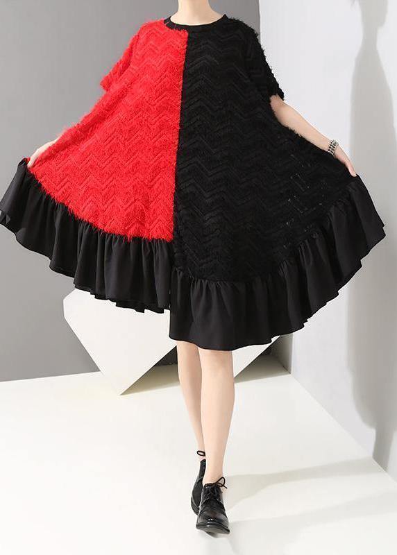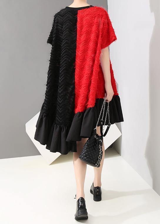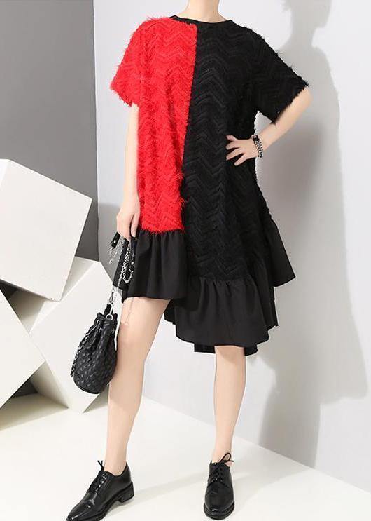 Handmade pattern Fun Short Sleeve Asymmetrical Round Neck Dress - SooLinen