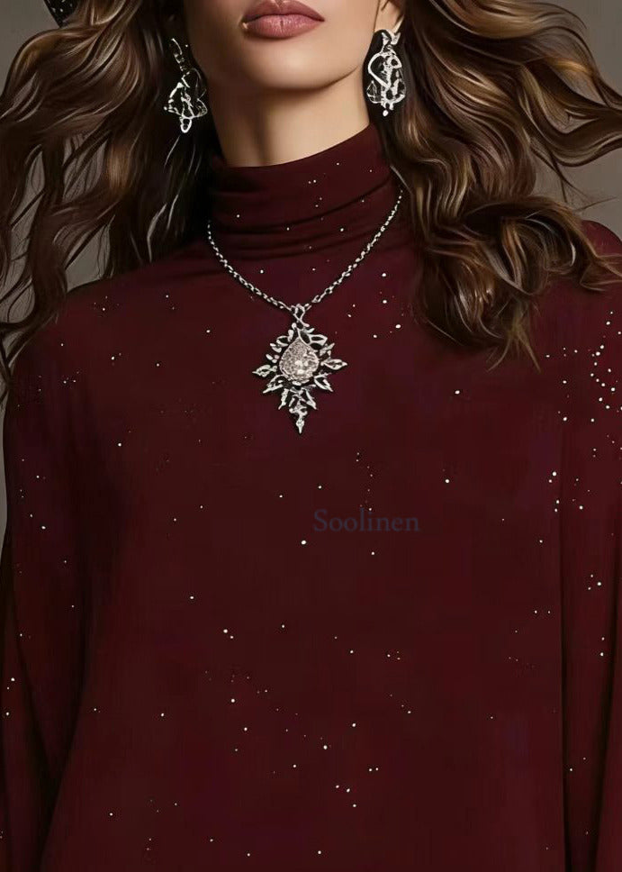Classy Mulberry Sequins Patchwork Lace Knit Top Spring