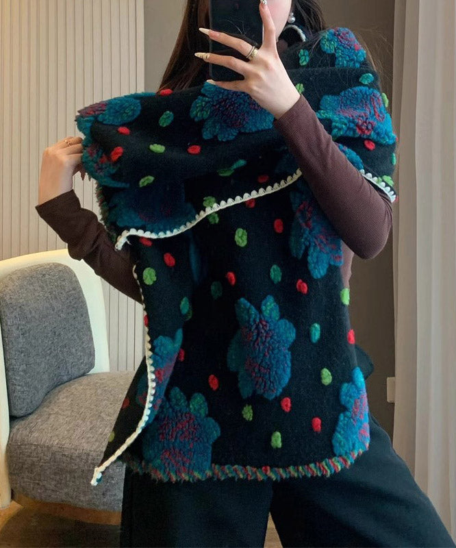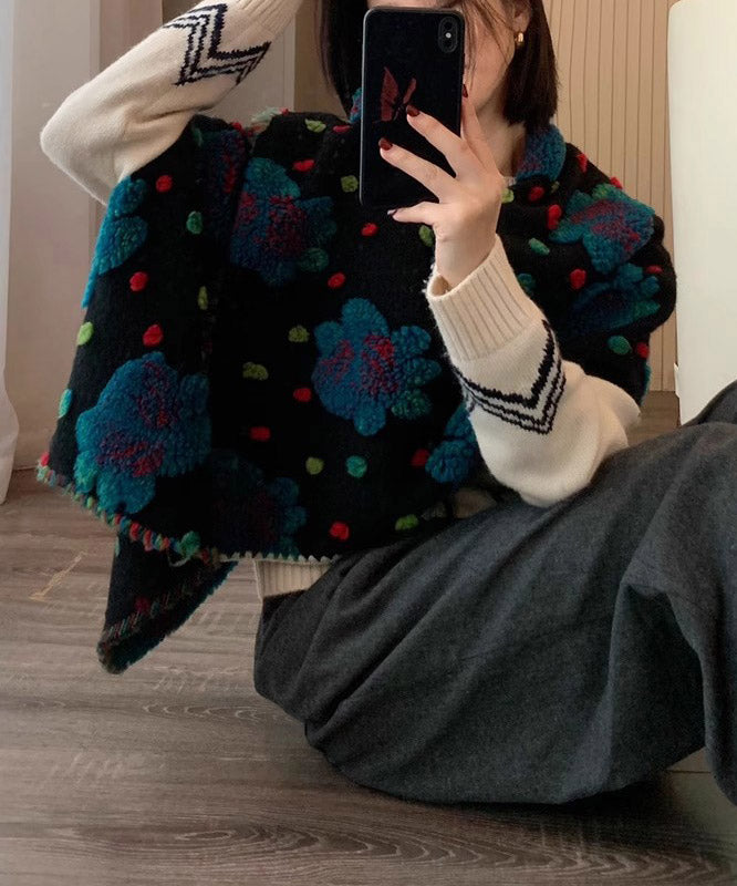 Chic Wool Blend Three-Dimensional Flower Embroidered Scarf