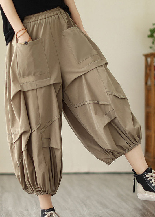 Khaki Elastic Waist Cozy Wide Leg Pants