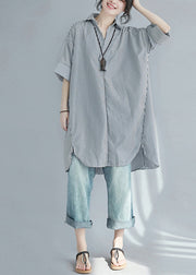 Modern Black Oversized Striped Cotton Shirt Dress Summer