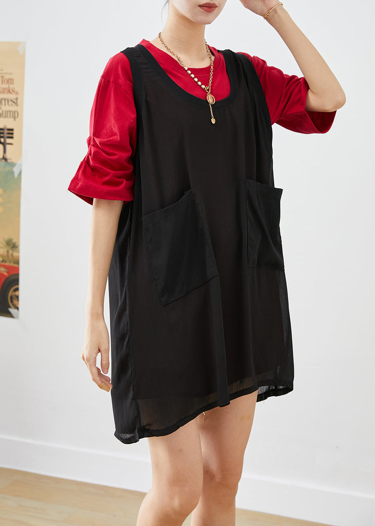 Art Red Oversized Pockets Tulle Vest And Tank Two Pieces Set Summer