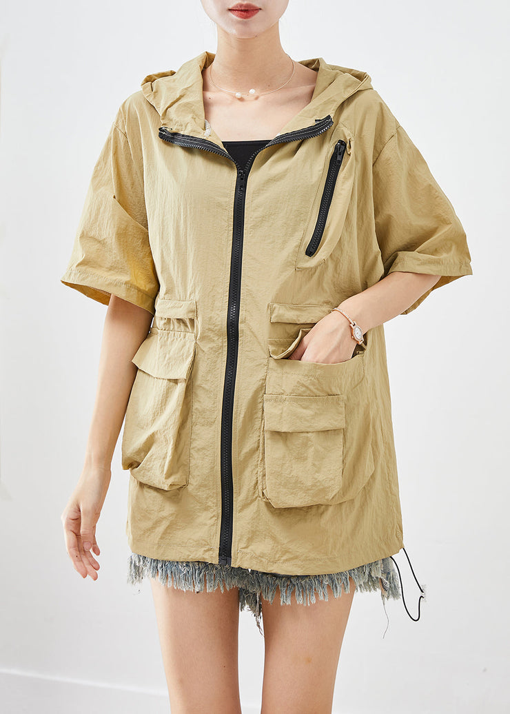 Classy Khaki Zip Up Pockets UPF 50+ Coat Jacket Summer