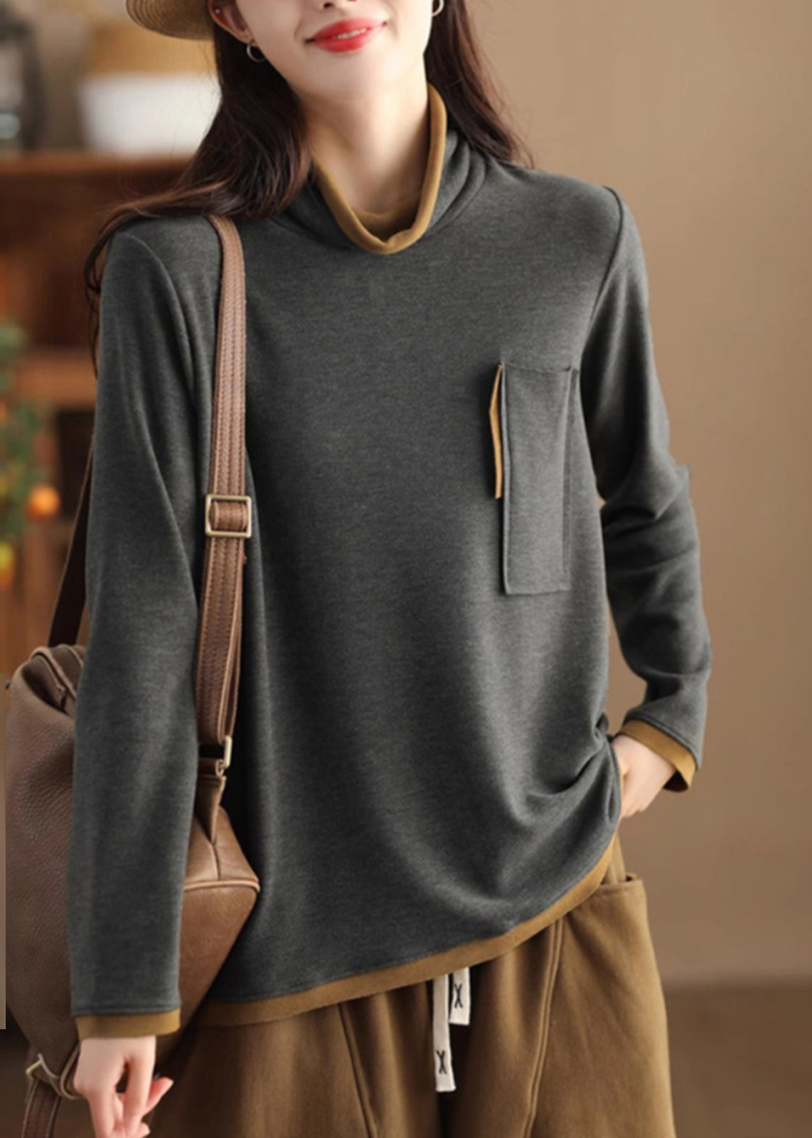 Organic Yellow Turtle Neck Patchwork Cotton Shirt Spring