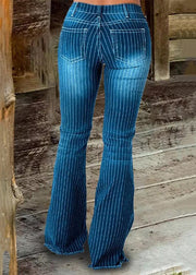 Stylish Blue Striped High Waist Denim Flare Bottoms Spring