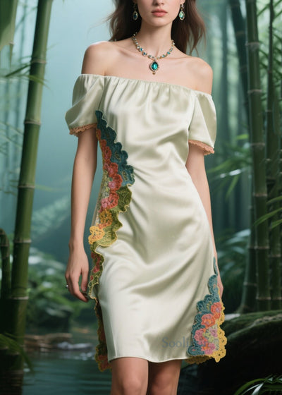 Beautiful Light Green Tasseled Patchwork Silk Mid Dress Summer