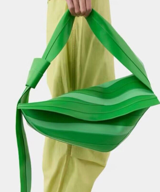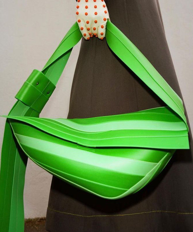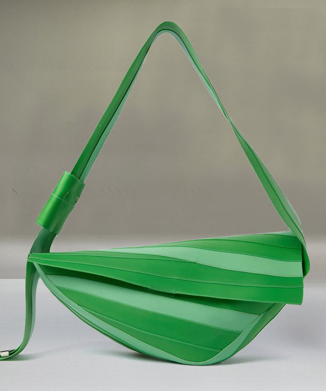 Unique Green Striped Asymmetrical Design Faux Leather Shoulder Handbag