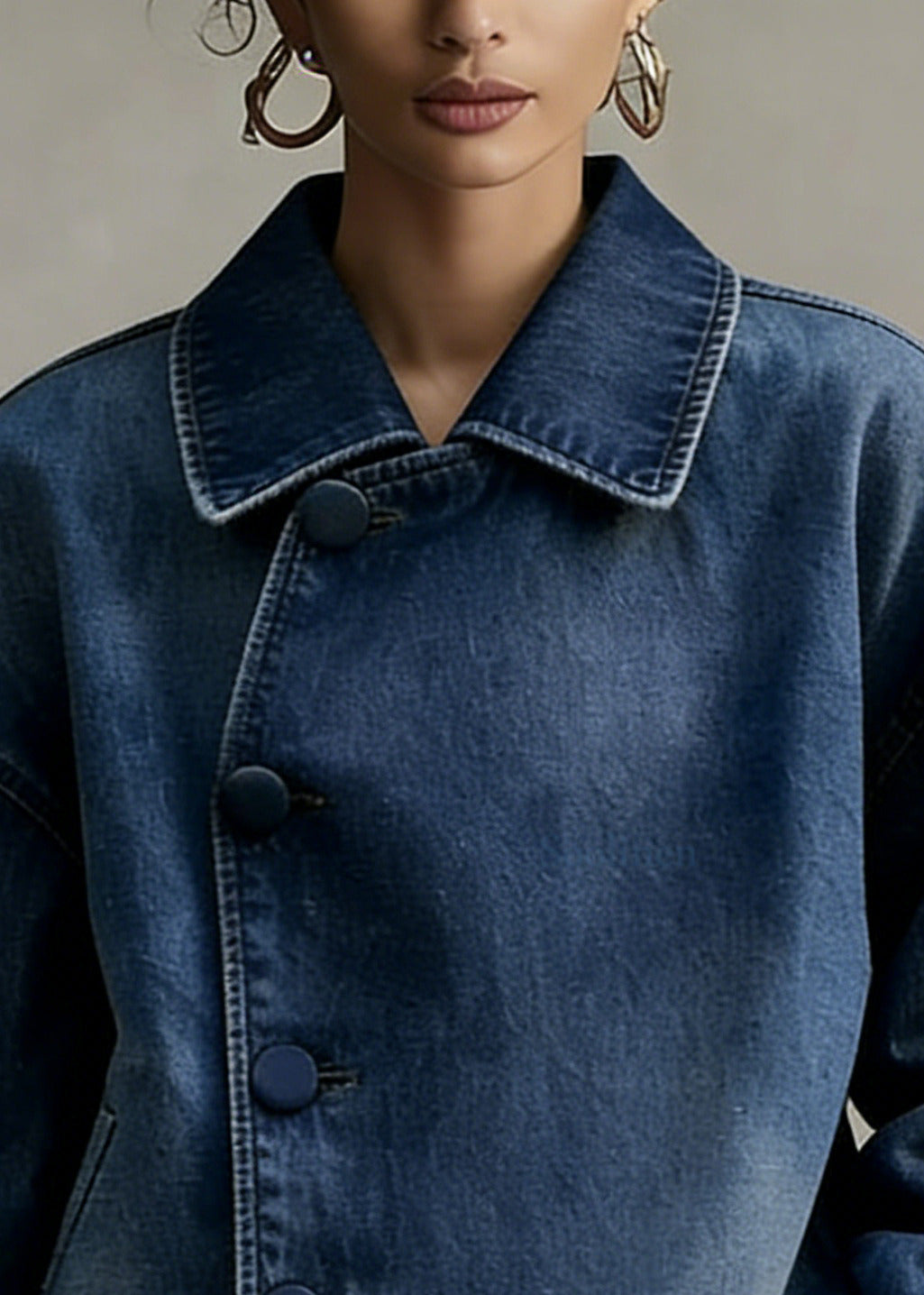 Casual Blue Peter Pan Collar Denim Coats Spring